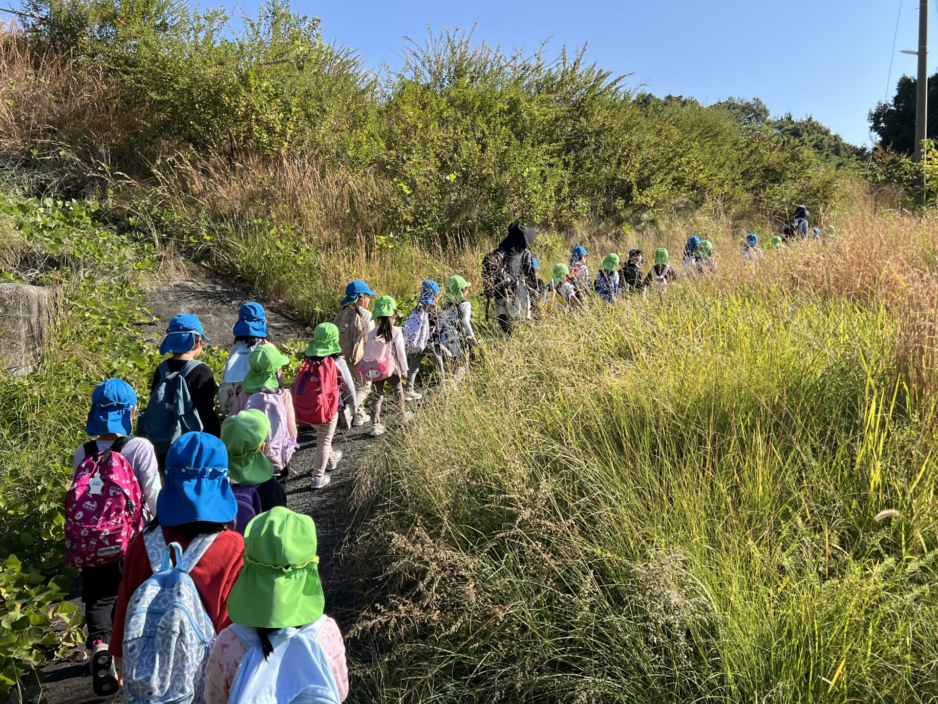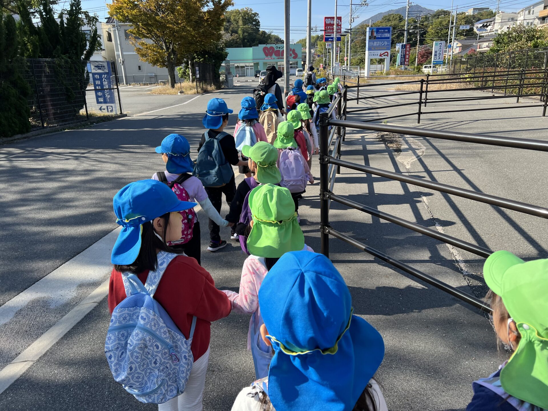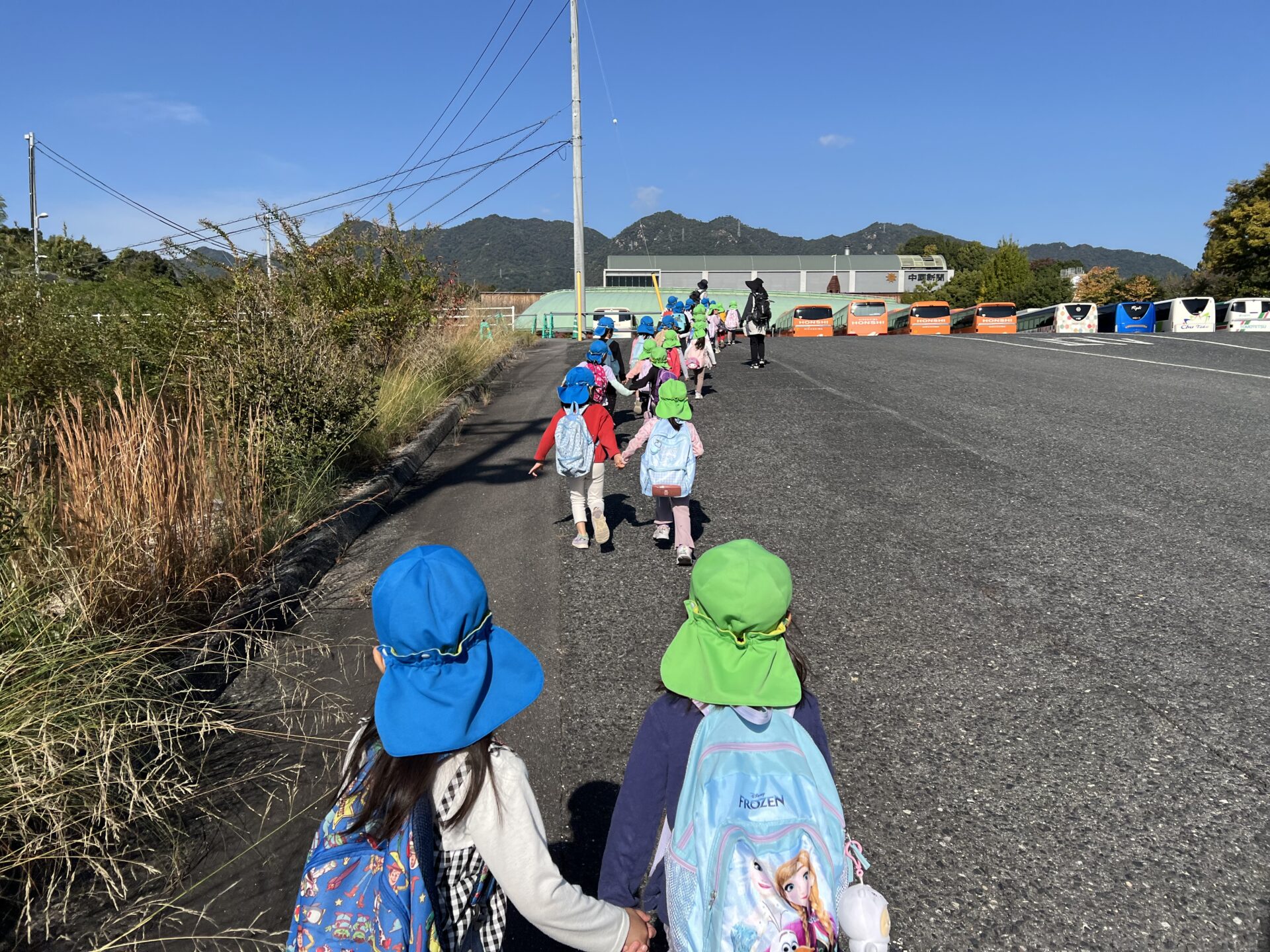 今日は、お天気にも恵まれお散歩日和となりました😊4~5歳児・そら・くじらチームさんが、ちゅーぴーパークまで【秋見つけの旅🍂】に出かけました。
