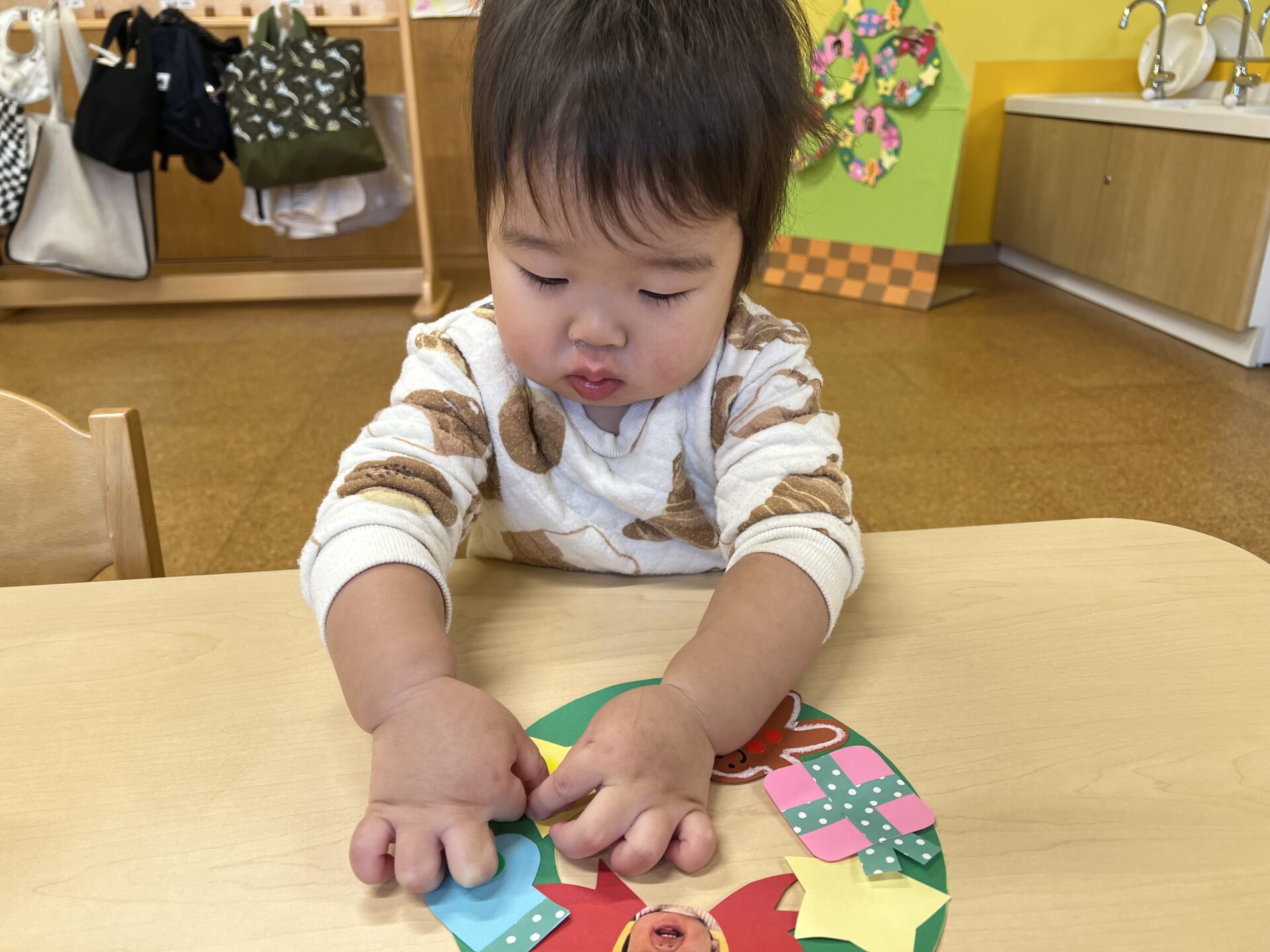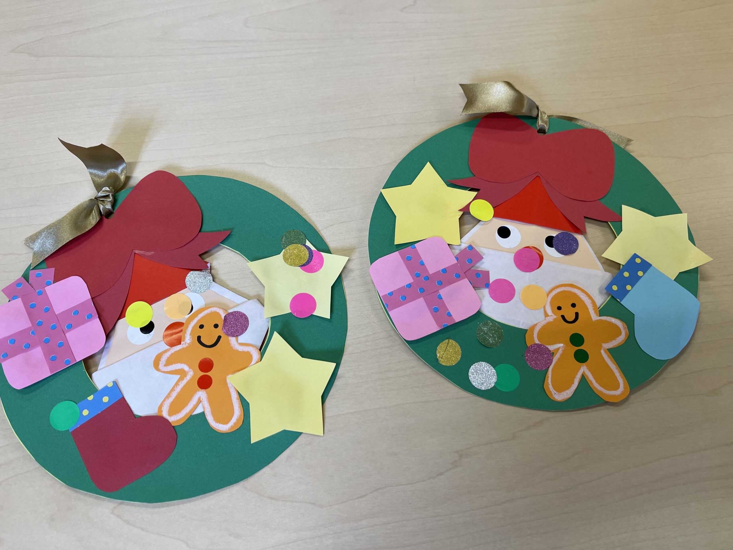 その後は、恒例の季節の製作🎄今回は、クリスマスが近いこともあり、クリスマスリースづくりに挑戦✨好きな所に、クリスマスの飾りつけをしていきます😊