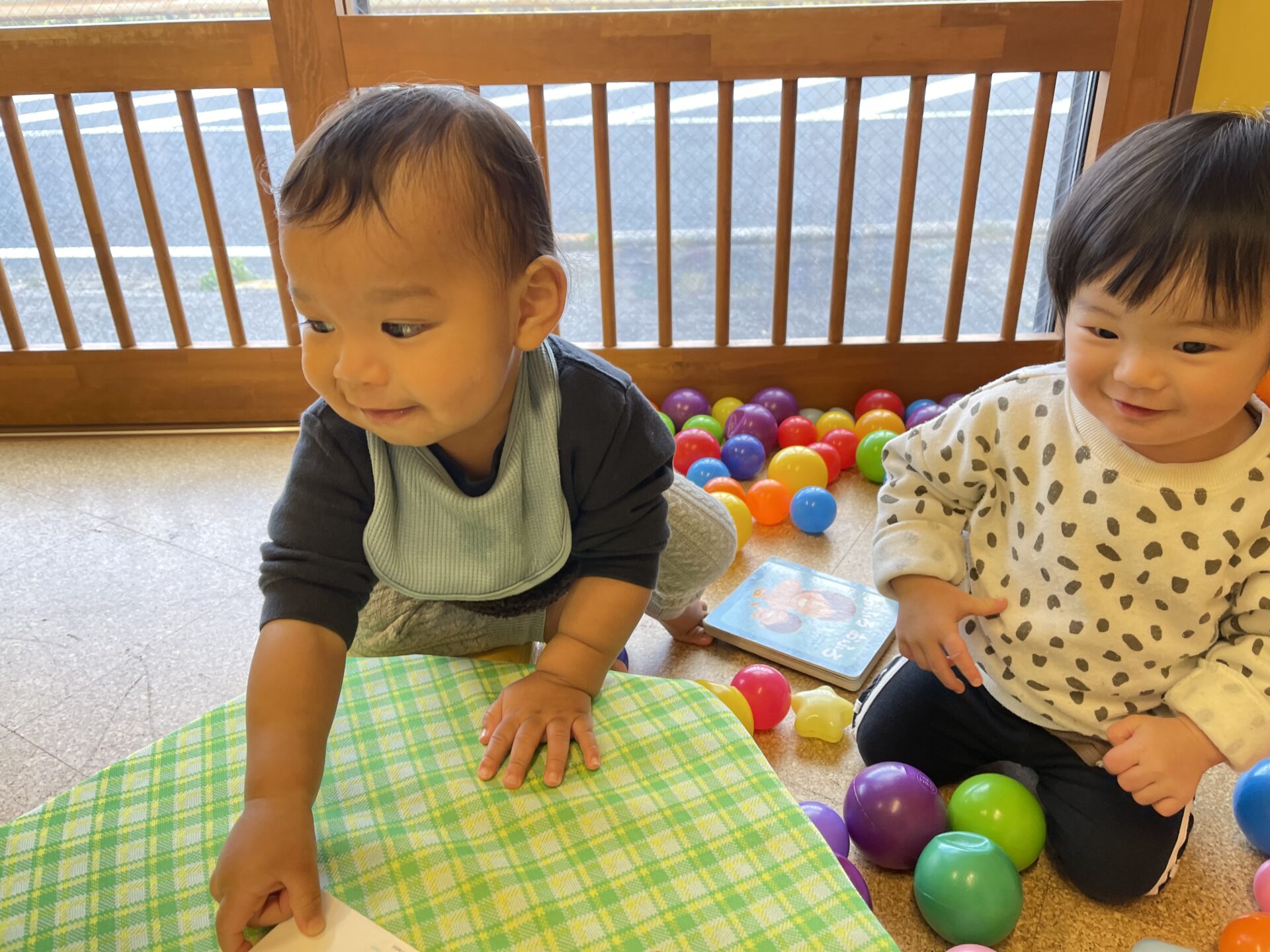12月から入園した新入園児の2人も、先生と一緒に楽しみました😊まだ慣らし保育中の2人ですが、少しずつ保育園の雰囲気に慣れていき、音楽がなるとピタッと涙が止まりました💗