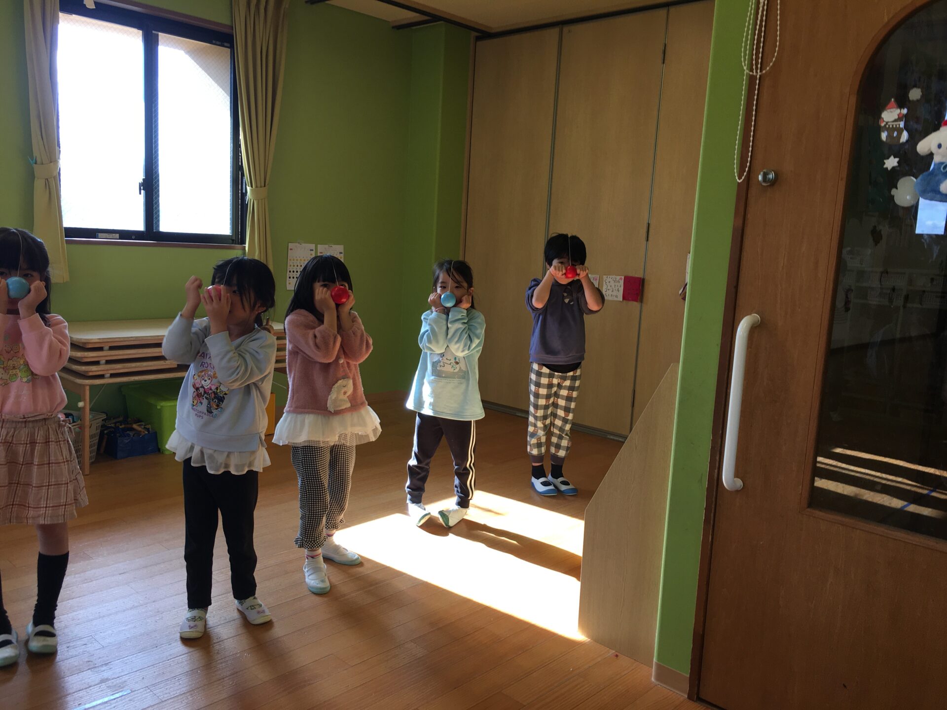 お部屋に行ってみると、明日の地域のけん玉まつりに参加するために、演目の練習を頑張っていました。