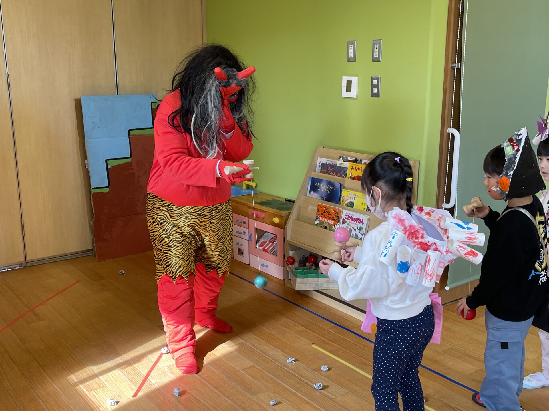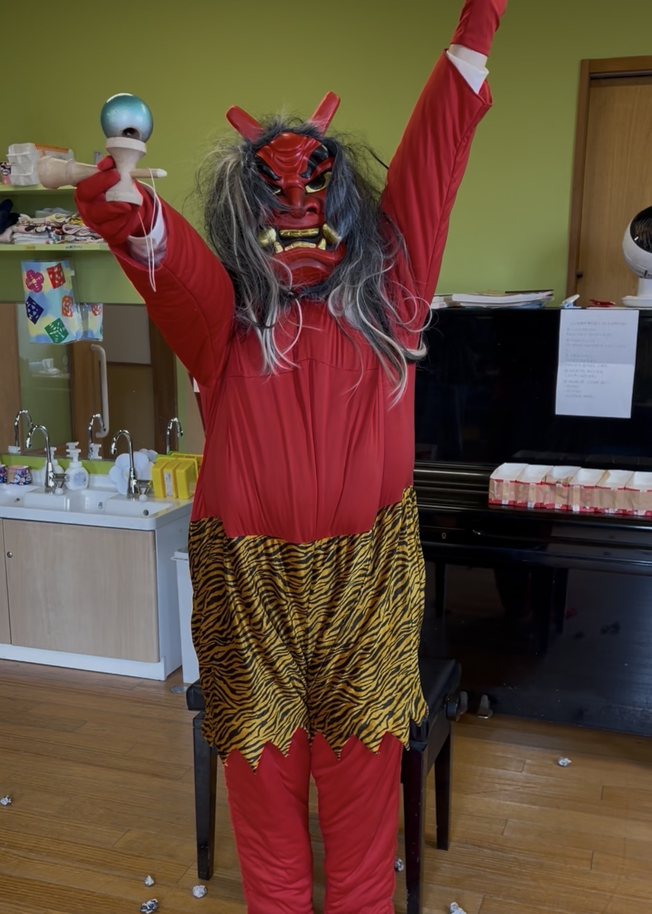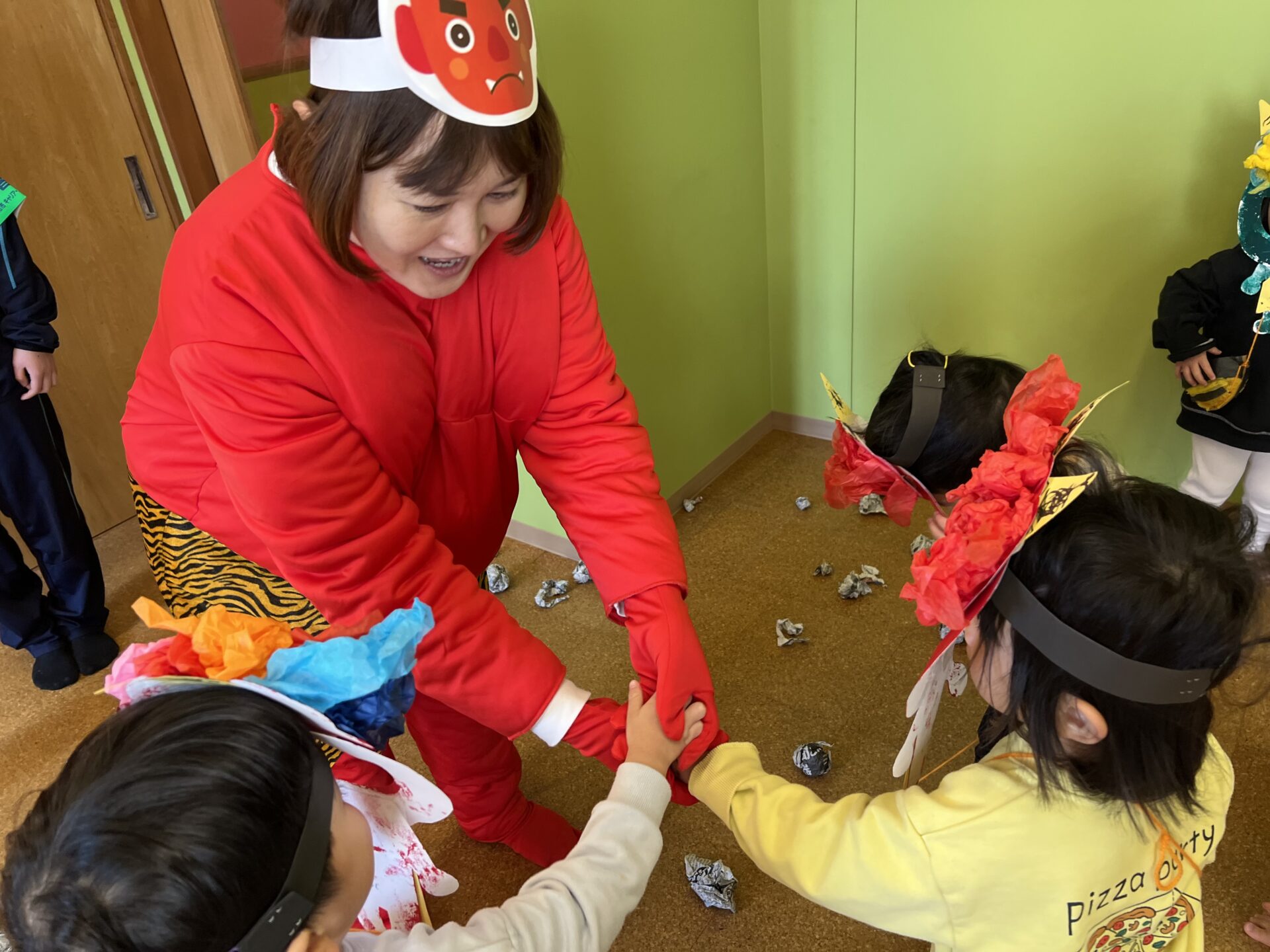 乳児チームは、園長の顔丸見えの赤鬼が登場👹