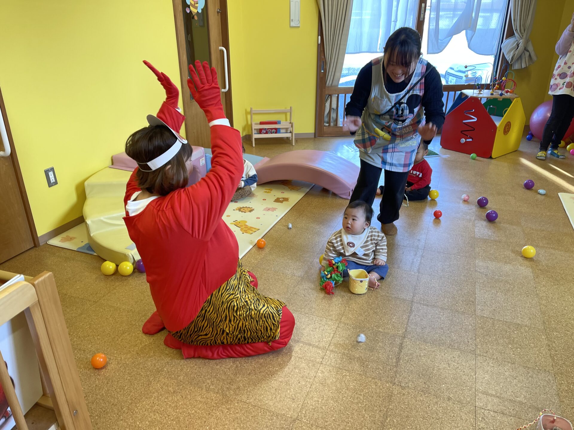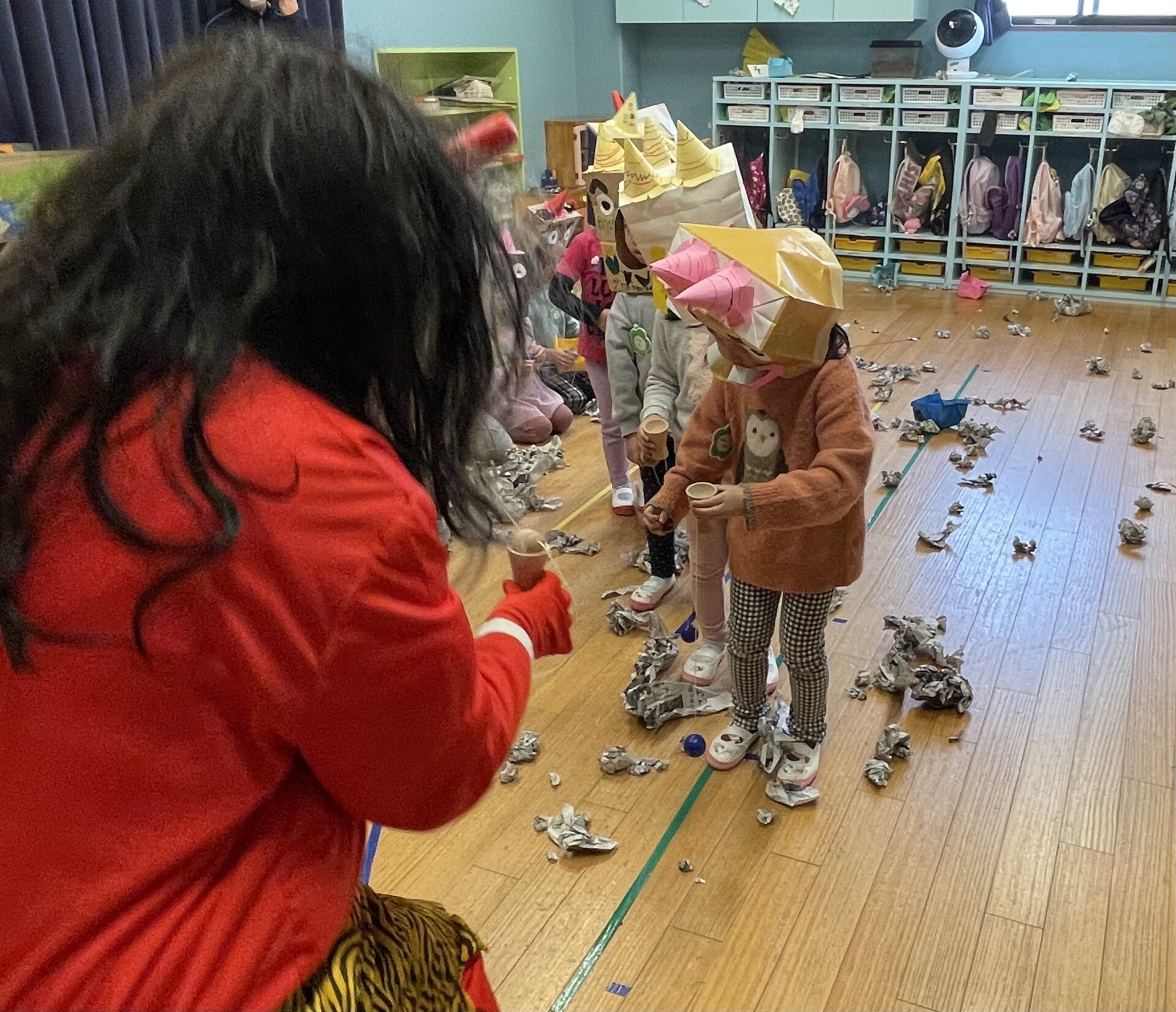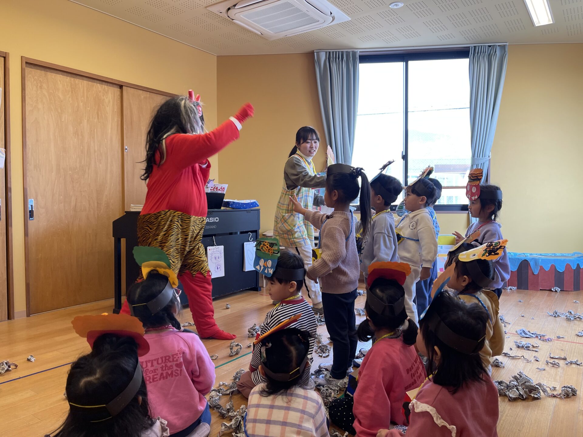 乳児チームは、園長の顔丸見えの赤鬼が登場👹