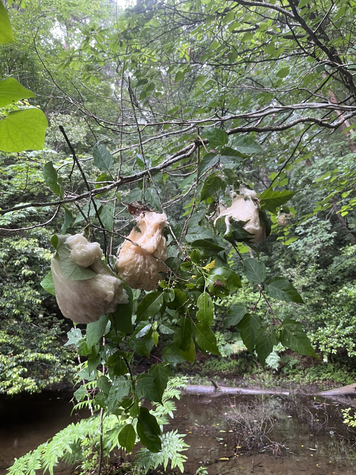 雨の森は、鳥のさえずり、カエルの鳴き声、雨の音、空気はきれいで、気持ちがよかったです。