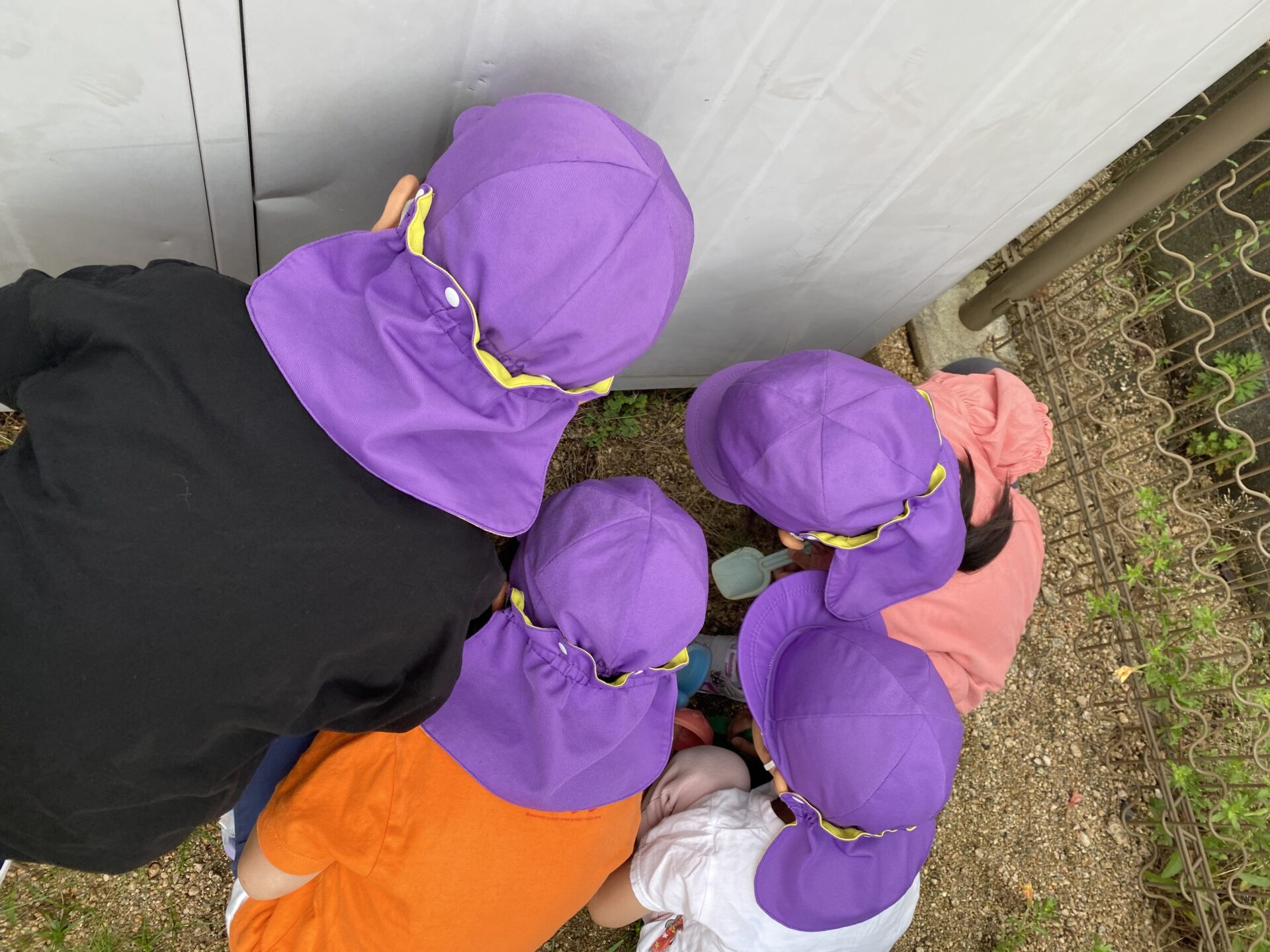 屋上園庭には、やってこない虫たちに、大興奮で目を輝かせていました。