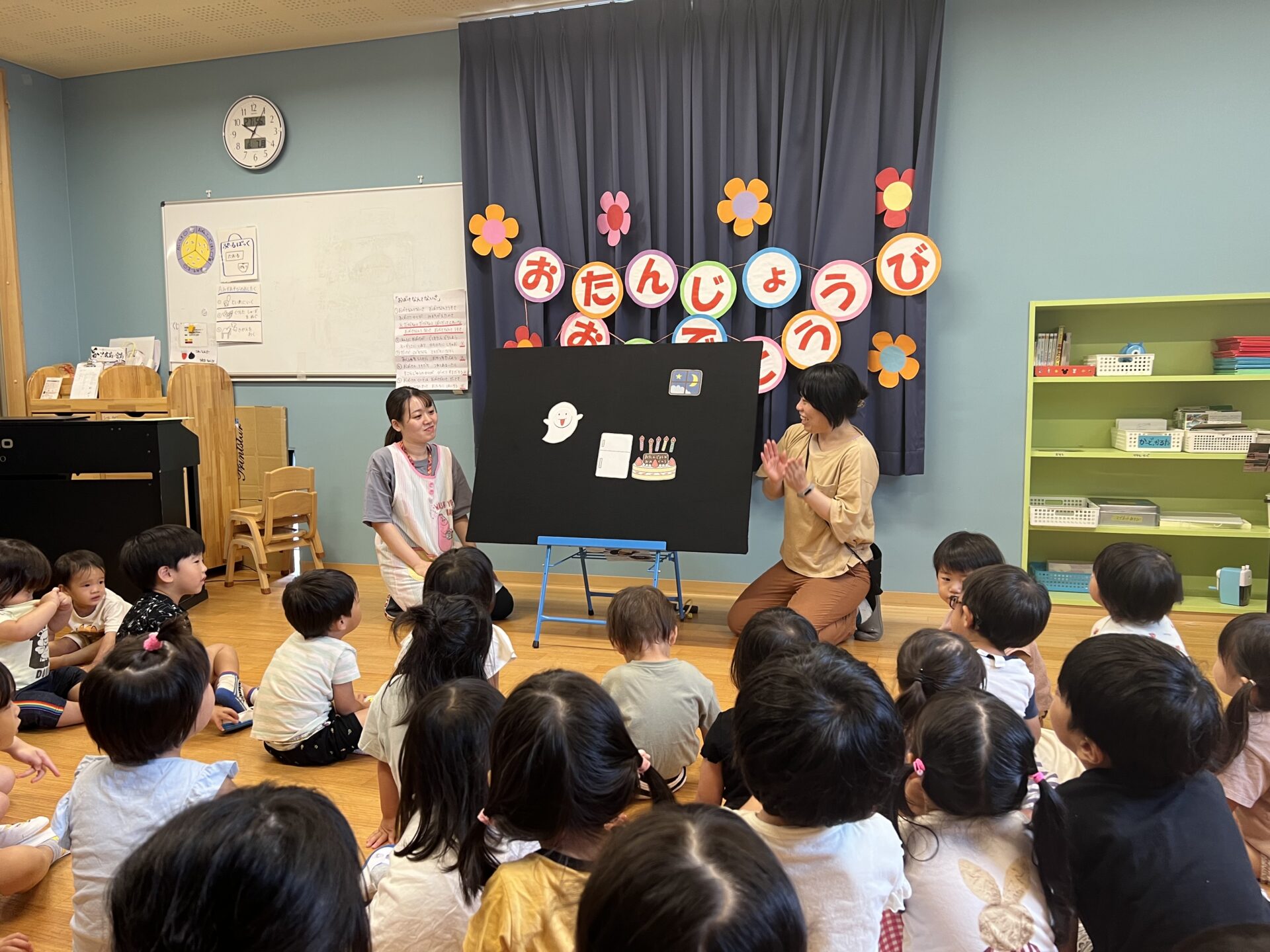 8月のお楽しみは、「食いしん坊のお化けの子」パネルシアターです。