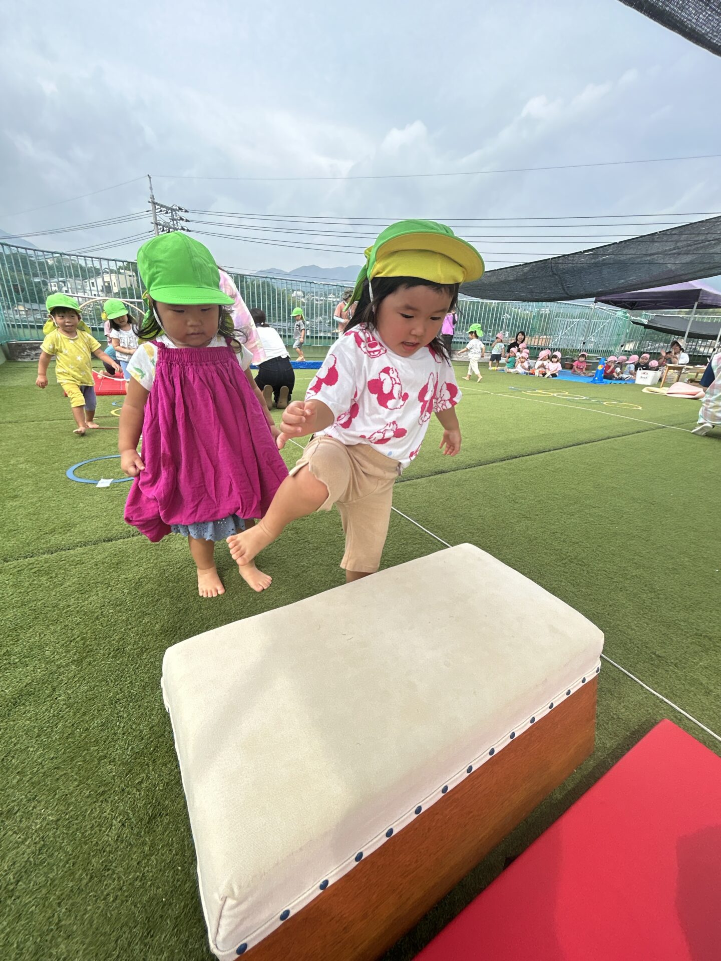 この運動遊びを通して、登る力や、ジャンプをする力そして、バランス力を身につけてくれたら良いなと思っています。そして、運動遊びを運動会などに繋げていけたら良いなと思います。