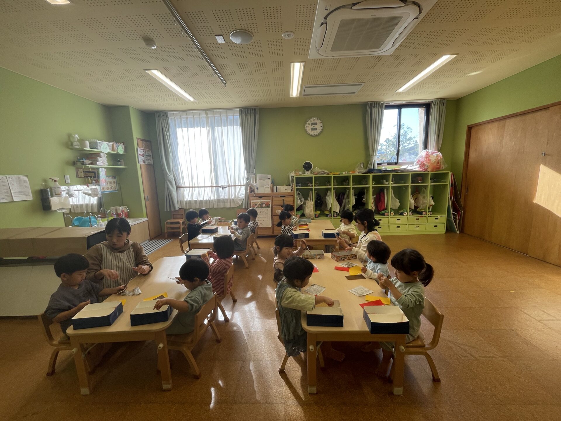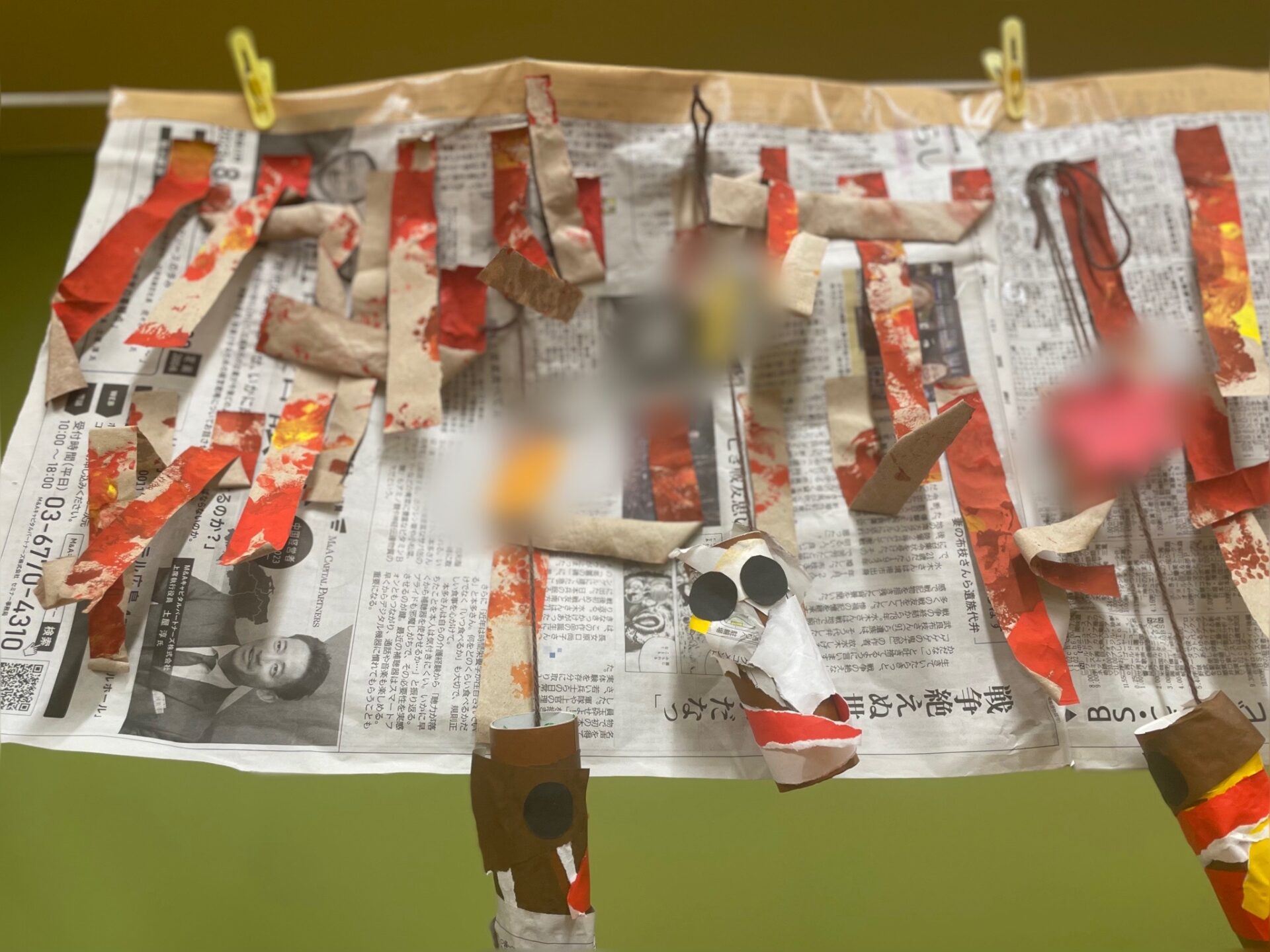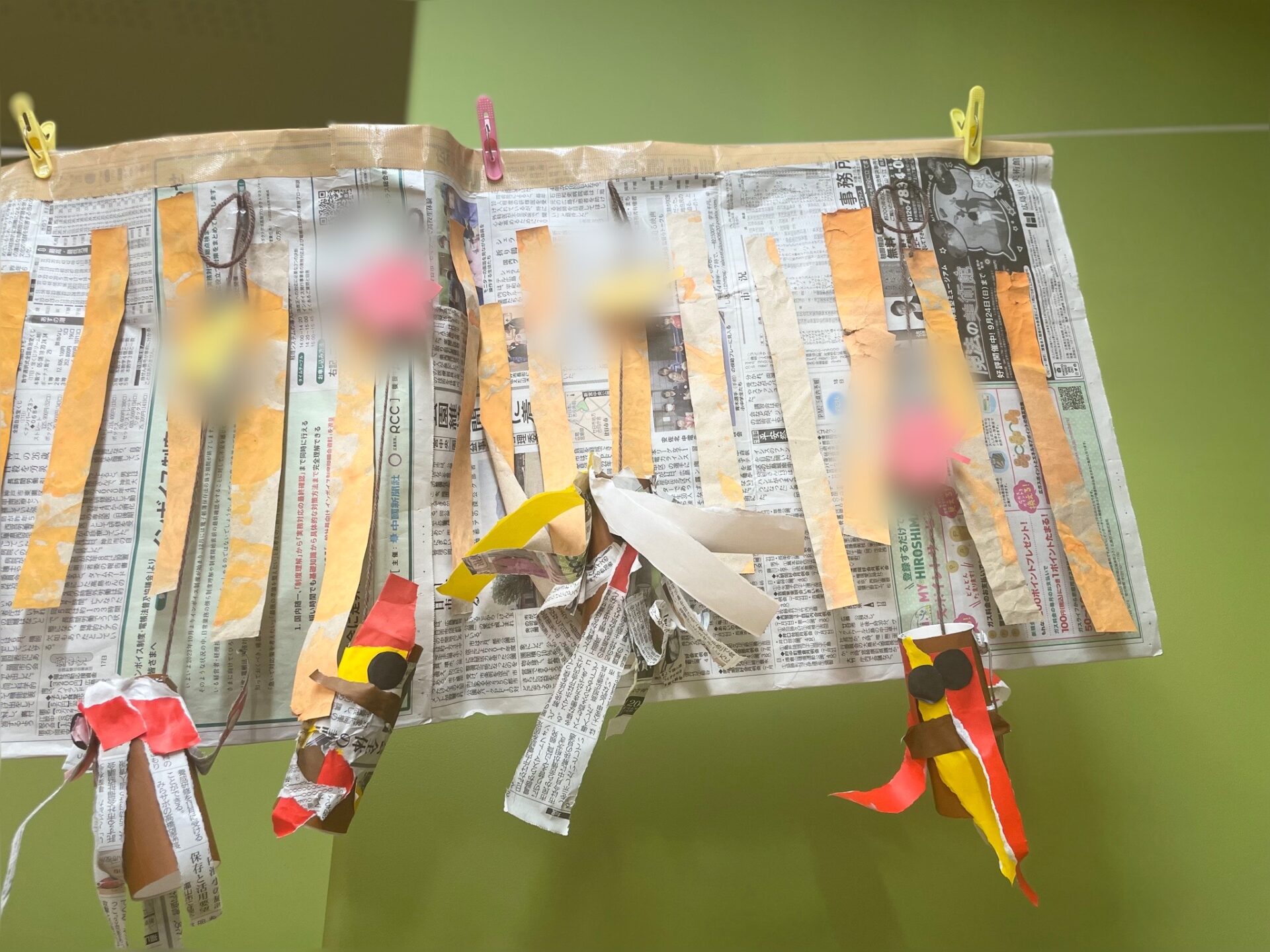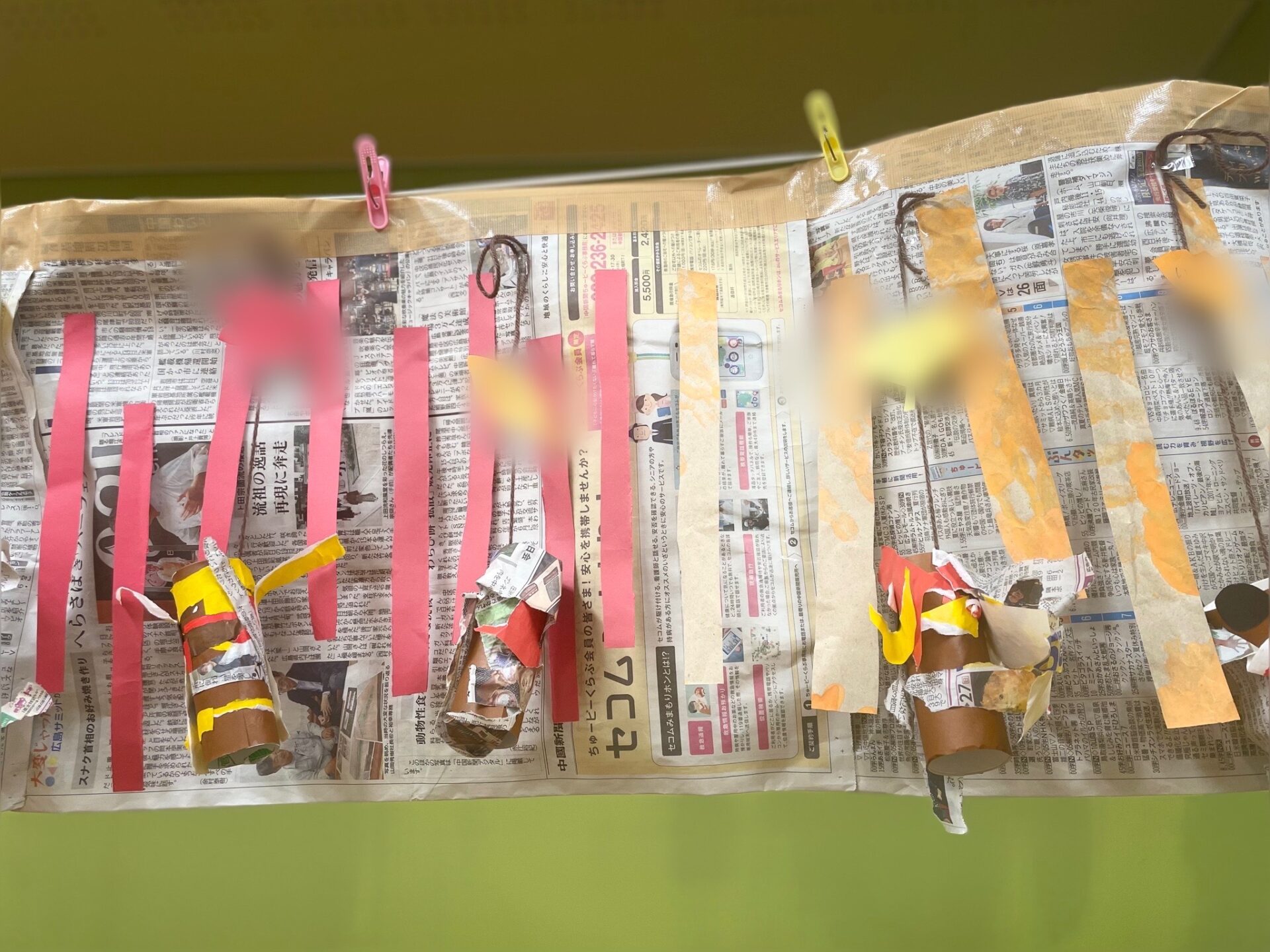 完成したミノムシは、保育士が糸をつけ部屋に飾りました。☺️