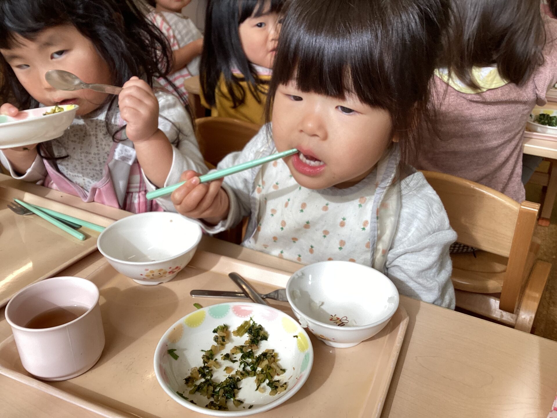 その後は葉っぱの部分でふりかけを作って、給食と一緒に食べましたよ。