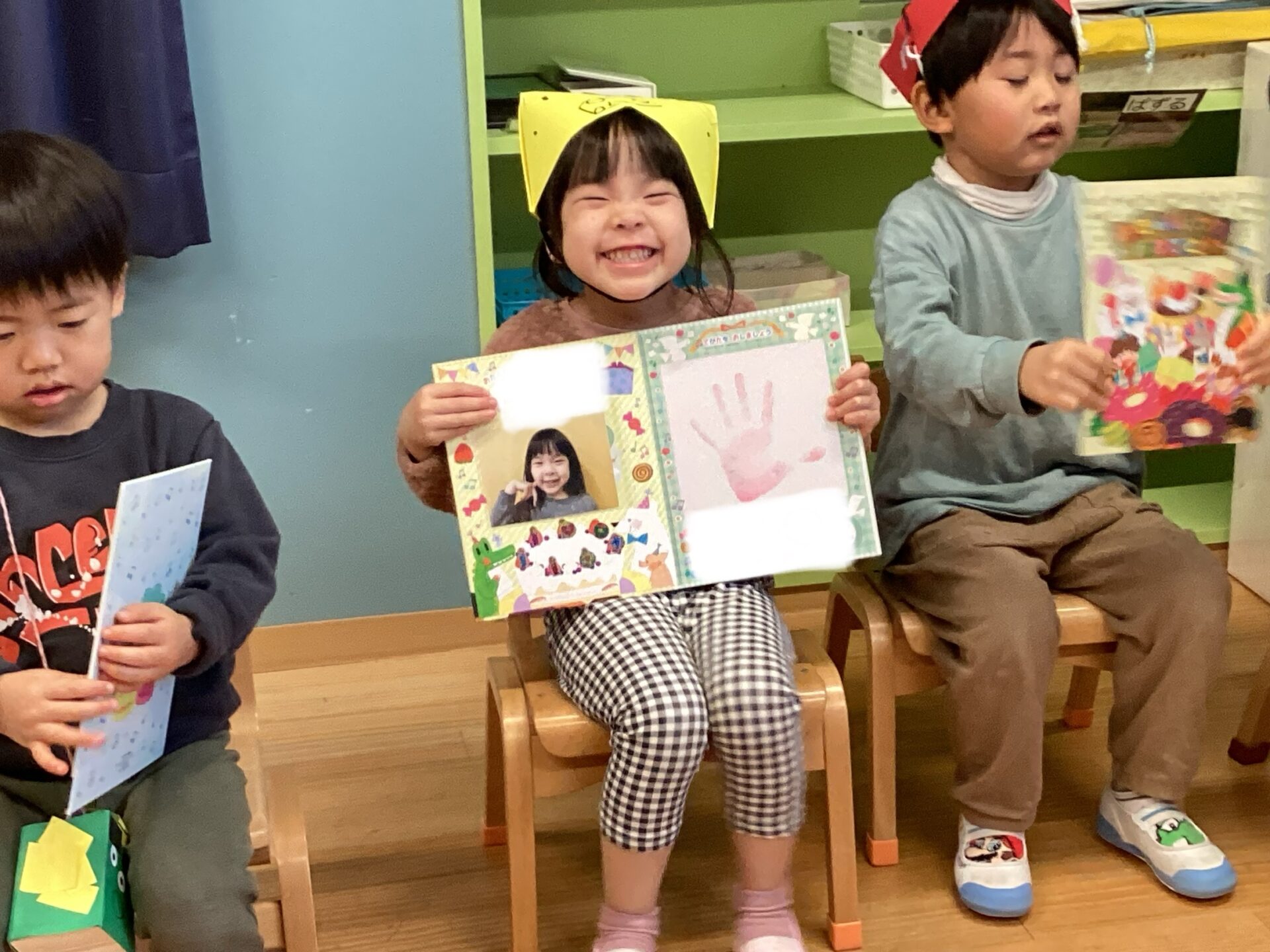 誕生カードをもらうと、こんなにいい笑顔☺️誕生会は特別ですね。