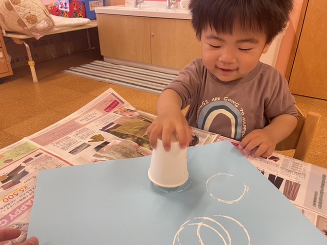 紙コップとメラニンスポンジを使って絵の具スタンプを楽しみました☺️