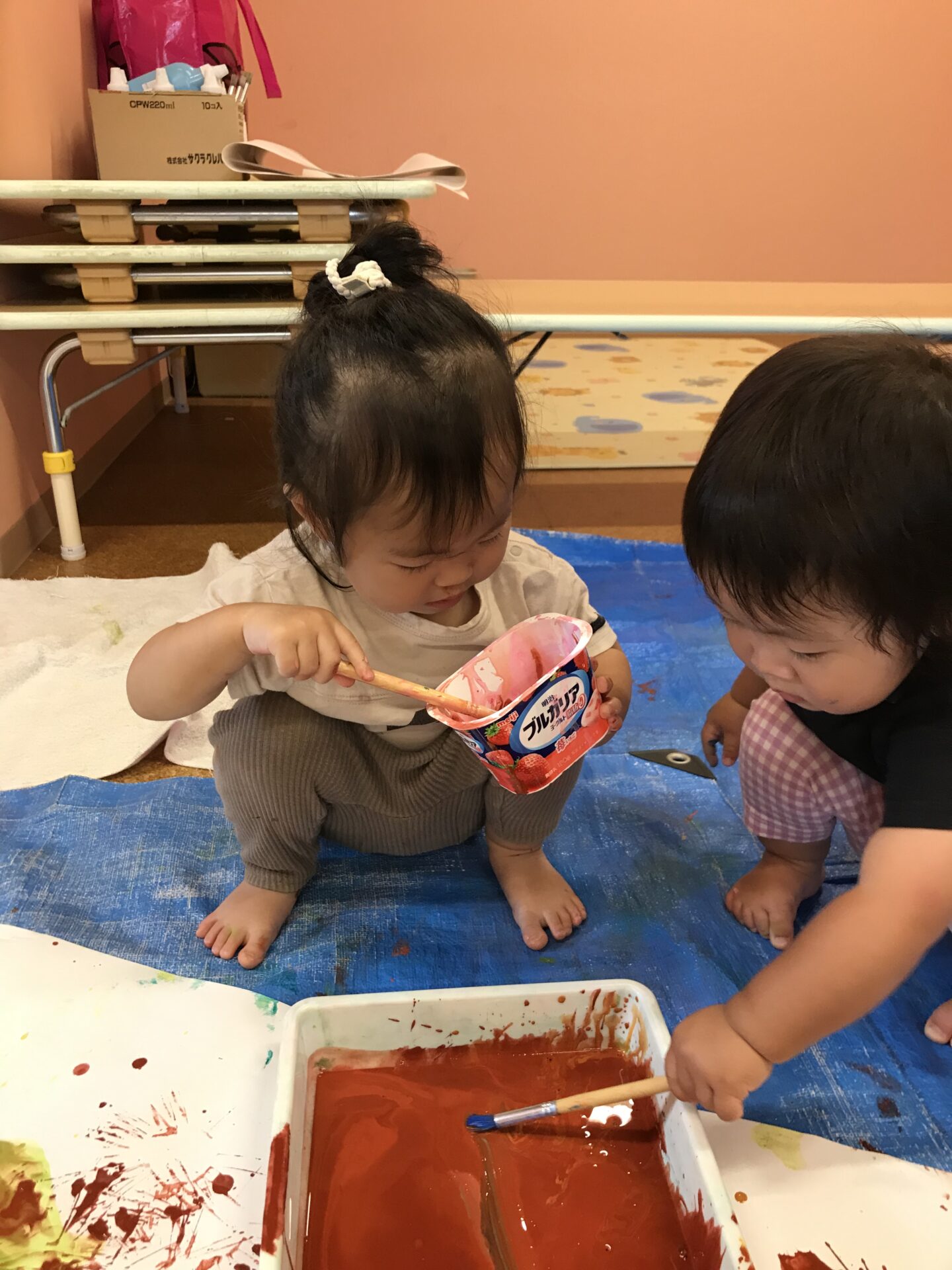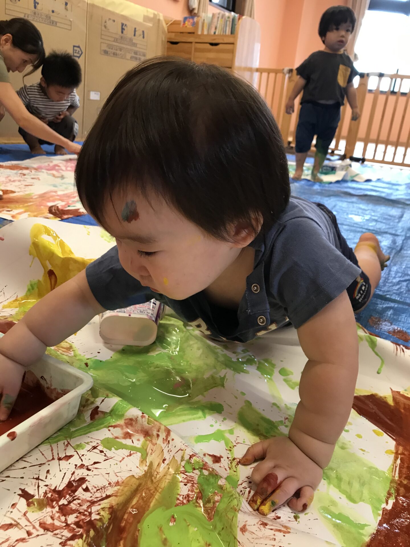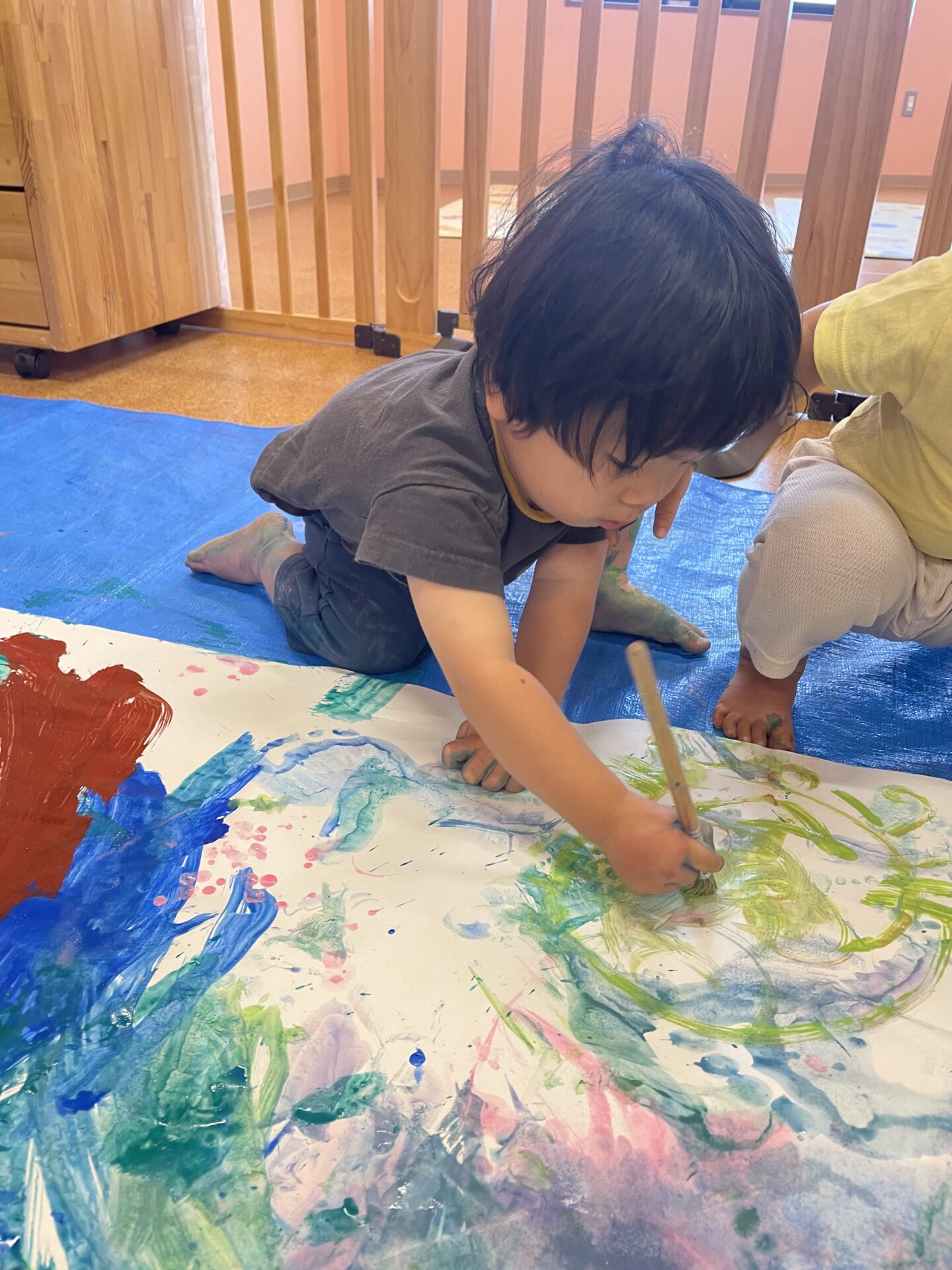 その前に慣れよう!!とだいちチームだけで絵の具遊びをやってみました☺️