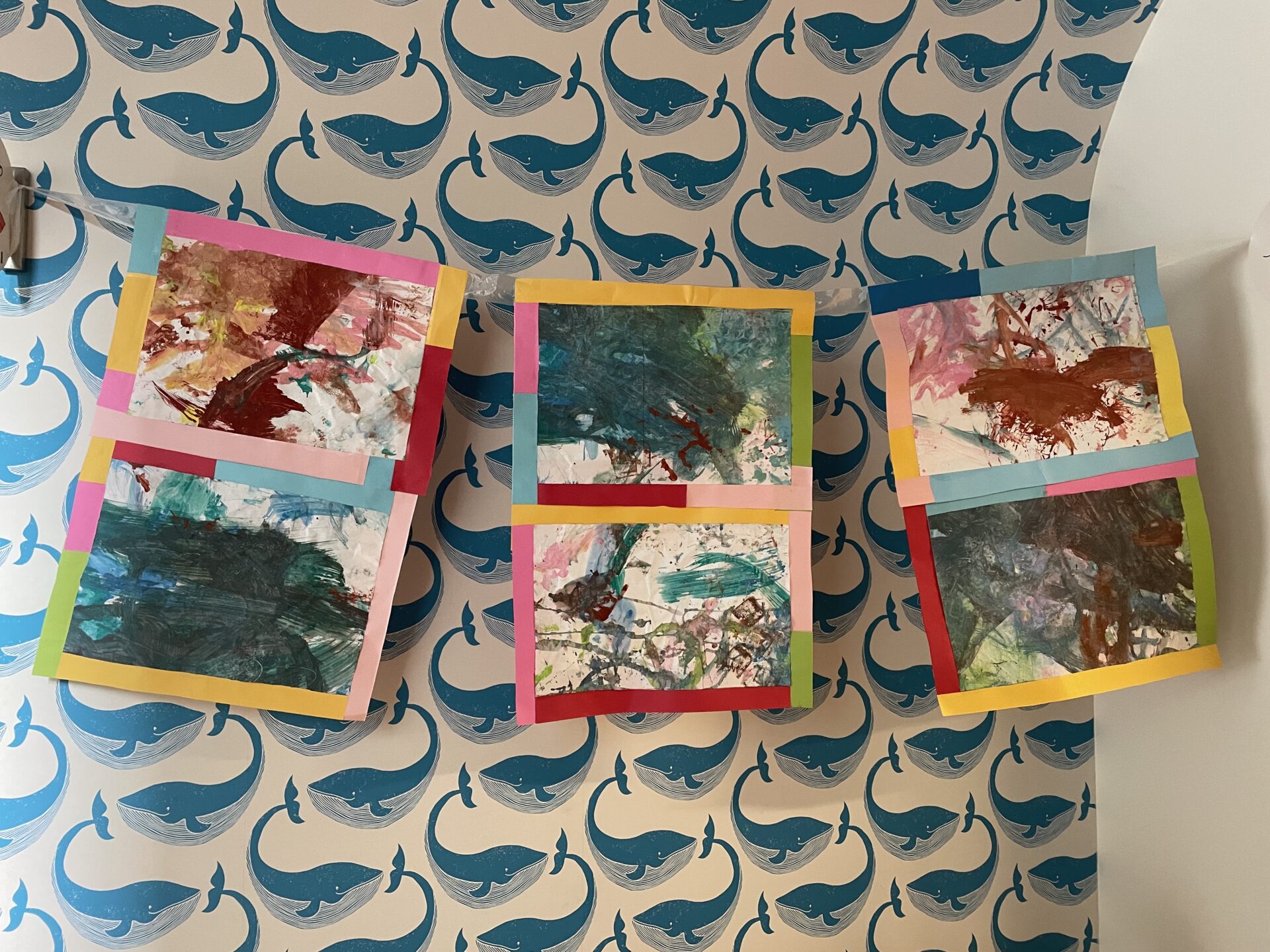 ちなみに、まだまだ子どもたちがやった絵の具遊びの作品が何かに変身予定です😳