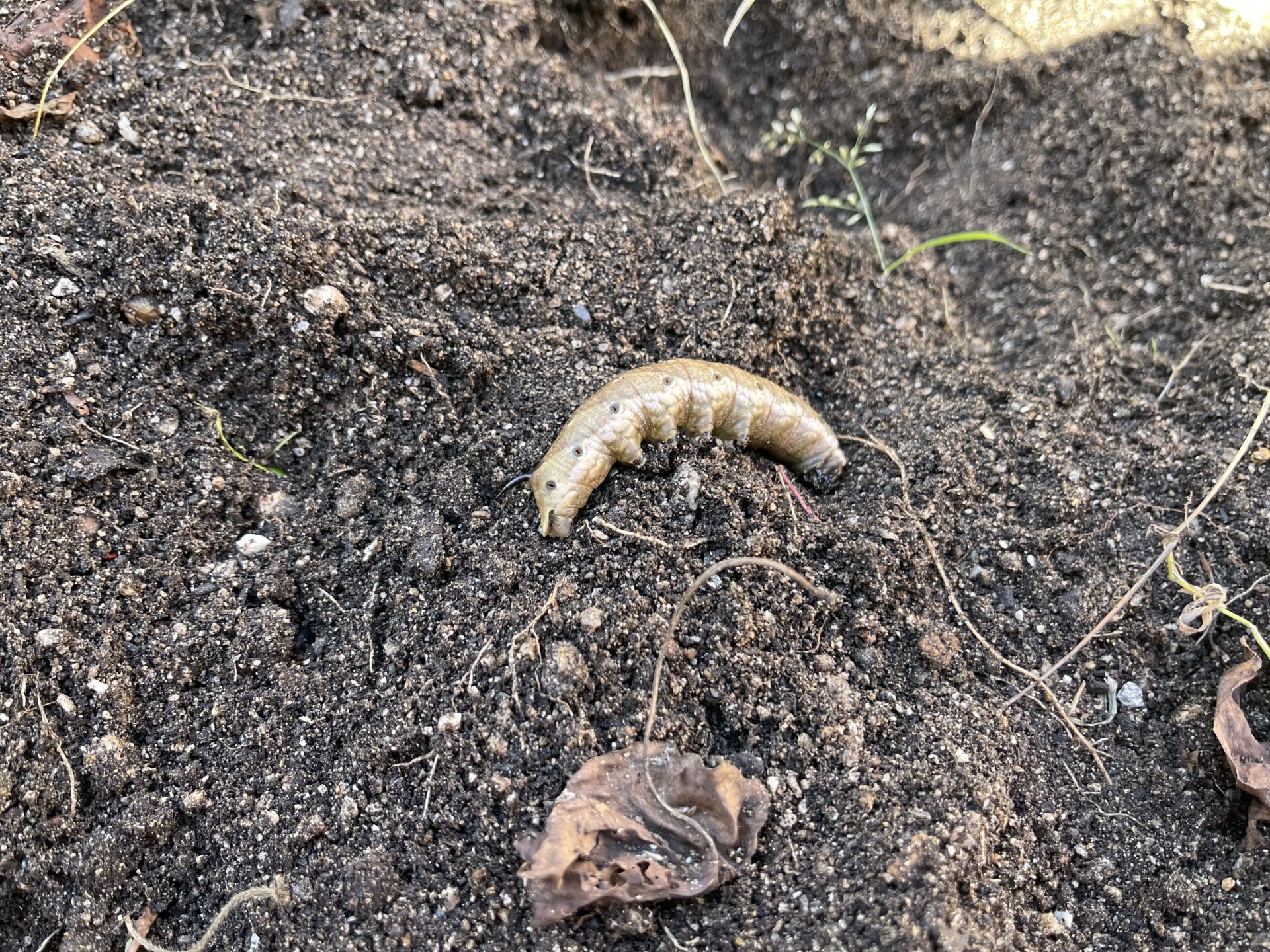 すると、土の中から大きないもむしが!!🐛