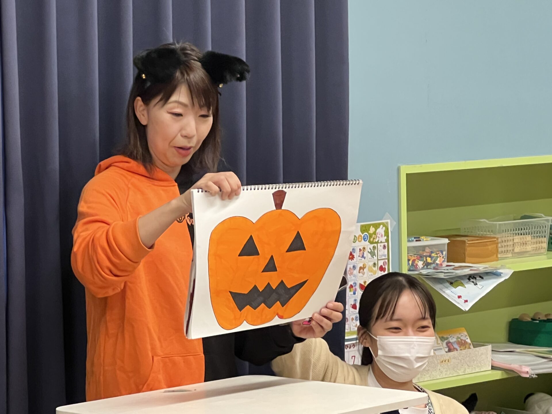 ハロウイン会🎃では、「おおきなかぶ」ならぬ「おおきなかぼちゃ」のスケッチブックシアターを見たり。