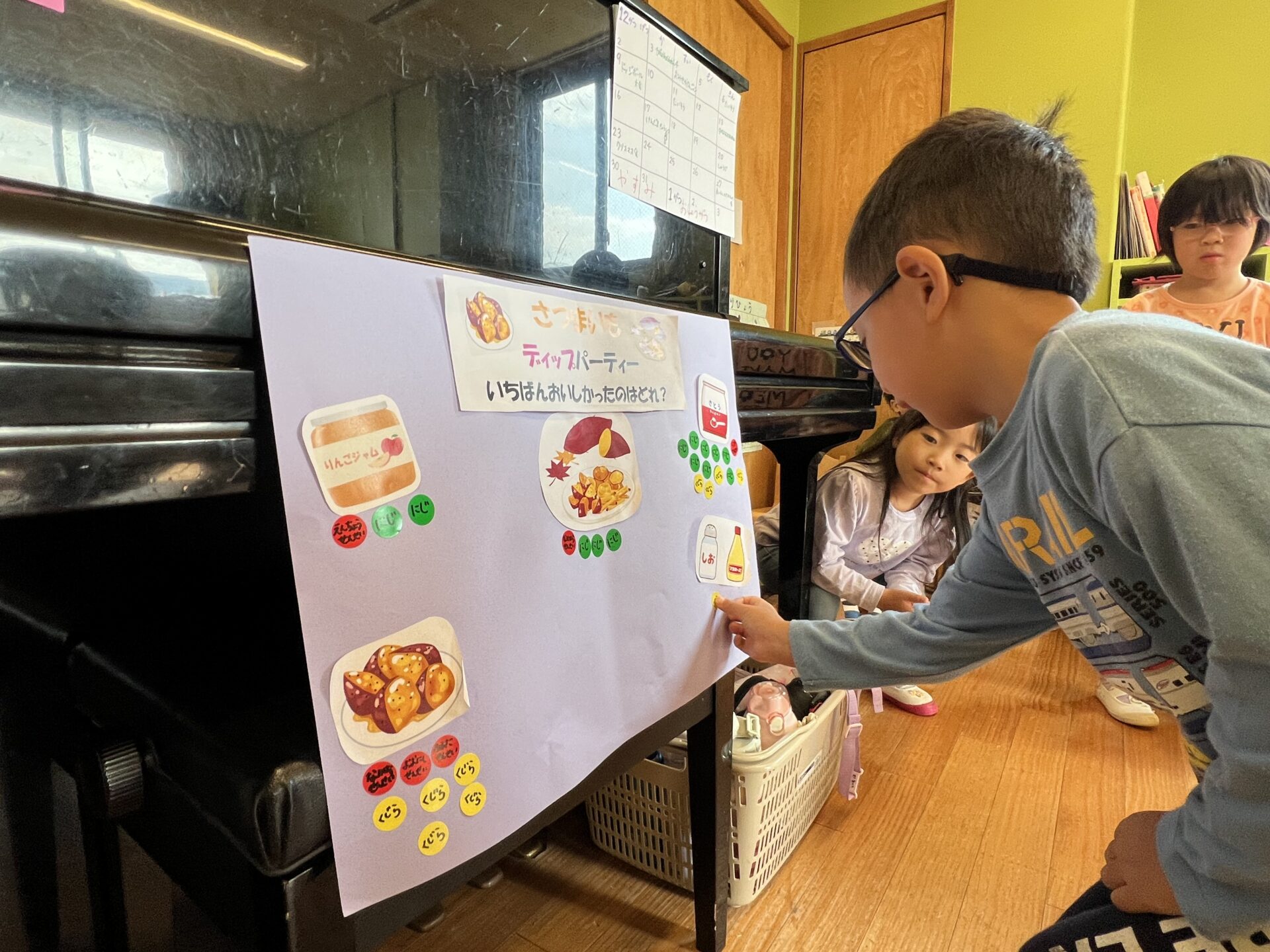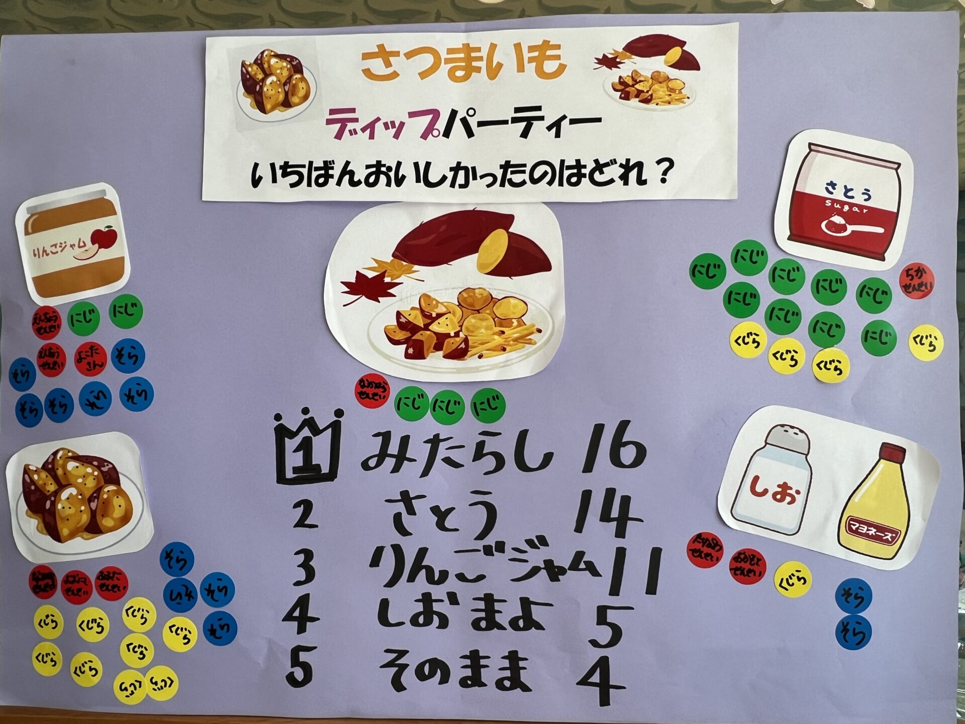 美味しかった味、好きな味にシールを貼って投票です😊