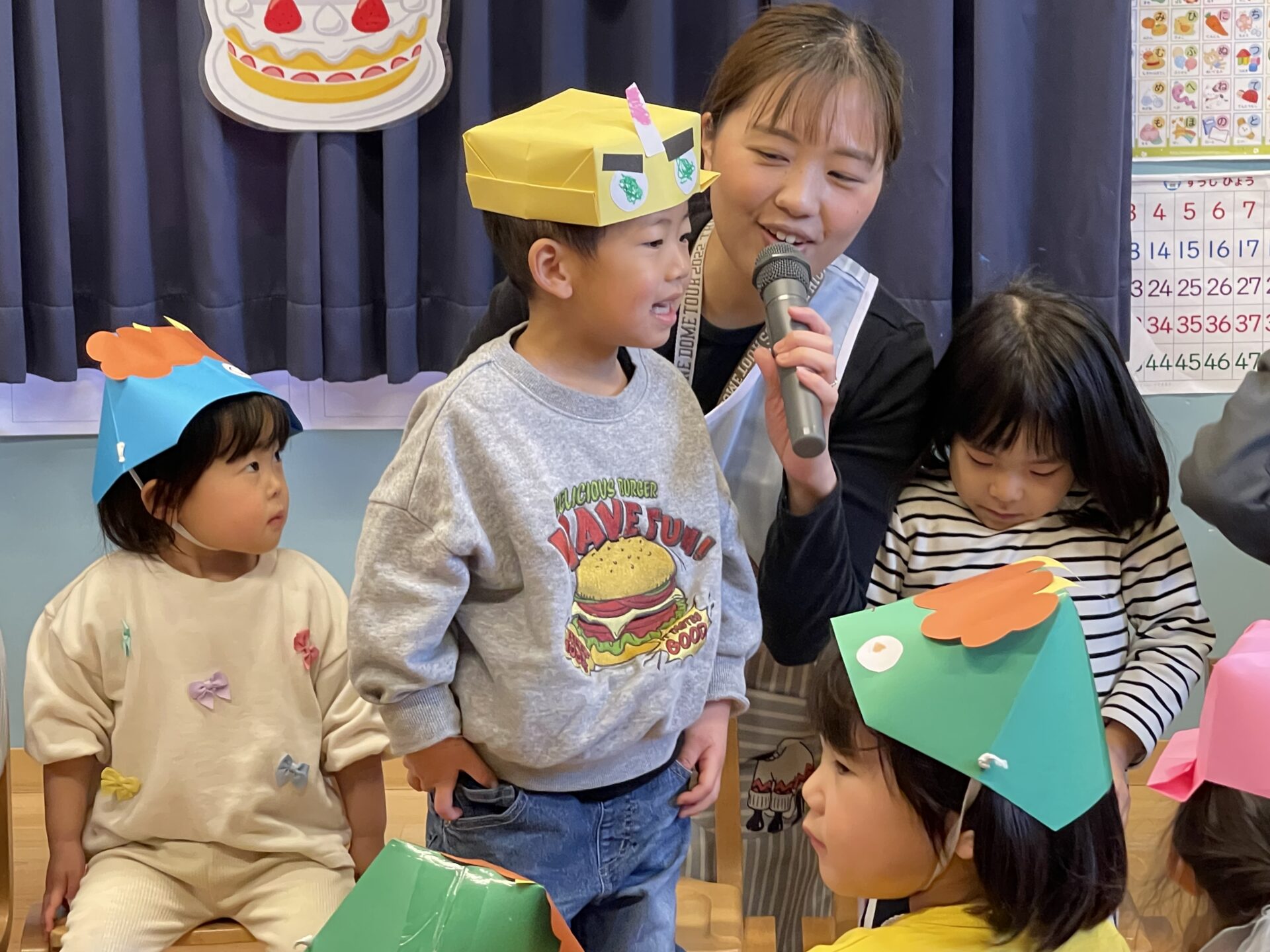 先月お休みだった1月生まれのお友だちも一緒にお祝いをしました。