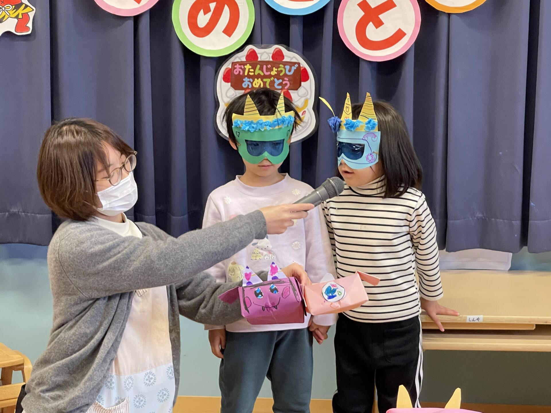 節分誕生会中、ずっと色眼鏡のお面をしていたそらチーム。どんな風に世界が見えていたのでしょうか(笑)