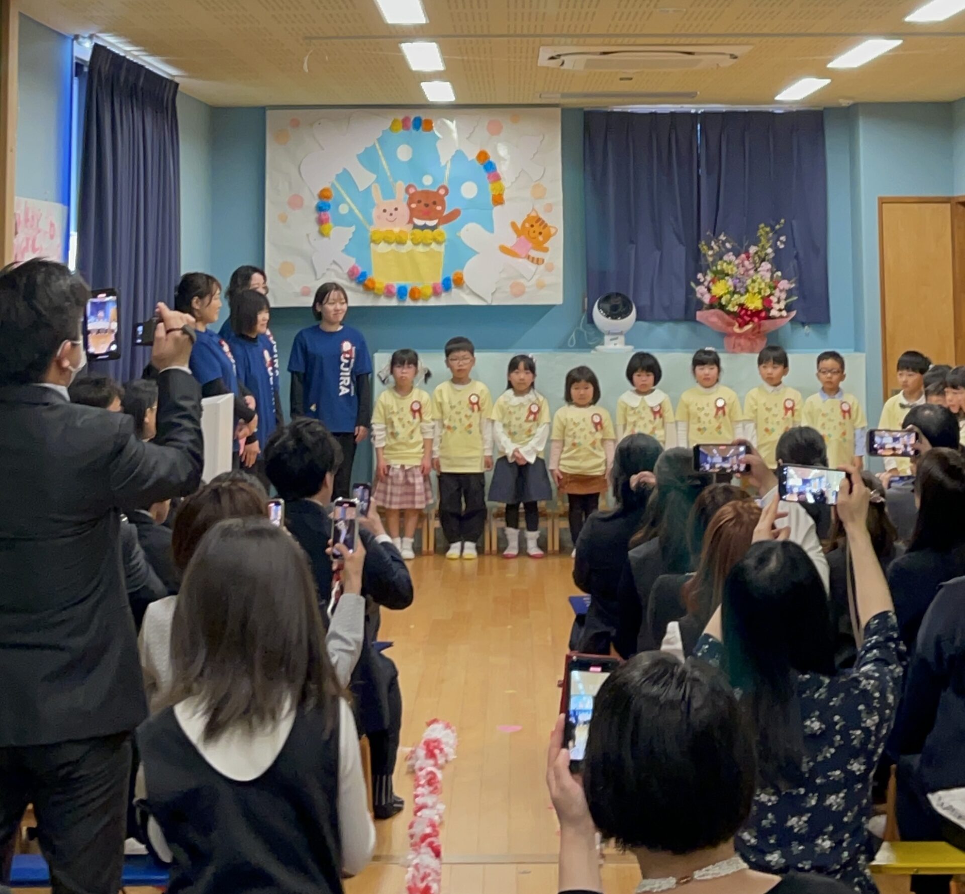 「心を一つに」をテーマに1年間過ごしてきたくじらチーム。時には喧嘩をして泣くこともありました。みんなで「どうしたらいいんかね」と話し合い、仲直りを繰り返してきました。そんなこどもたちだから、「これをやろう!」と決めたときのパワーは素晴らしかったです。まさに、みんなの心がひとつになっていました。