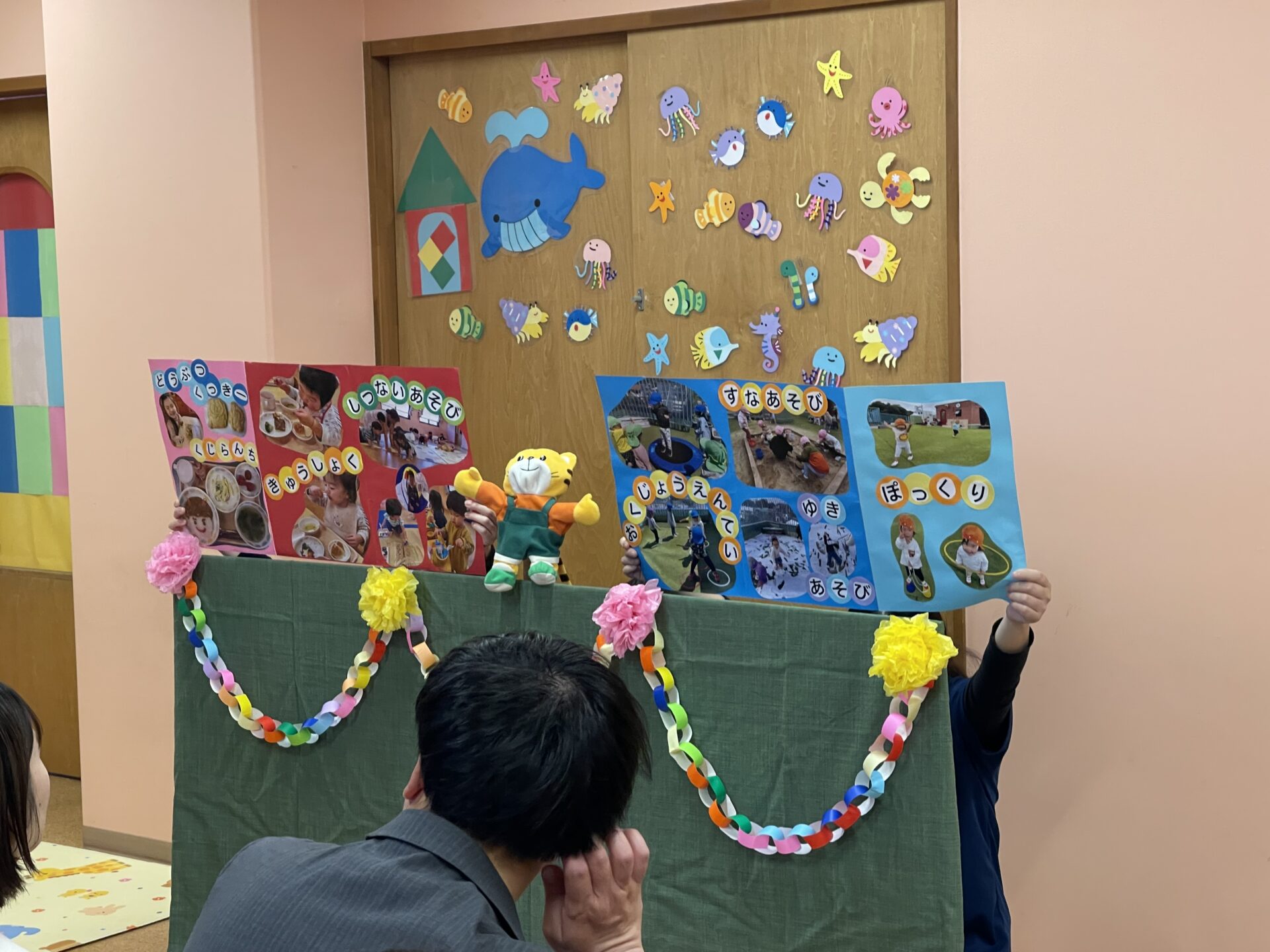 そして、在園児代表として、年長くじらチームが歌のプレゼント♪くじらチームになって最初の大役です!くじらチームさん、素晴らしい歌をありがとう!
