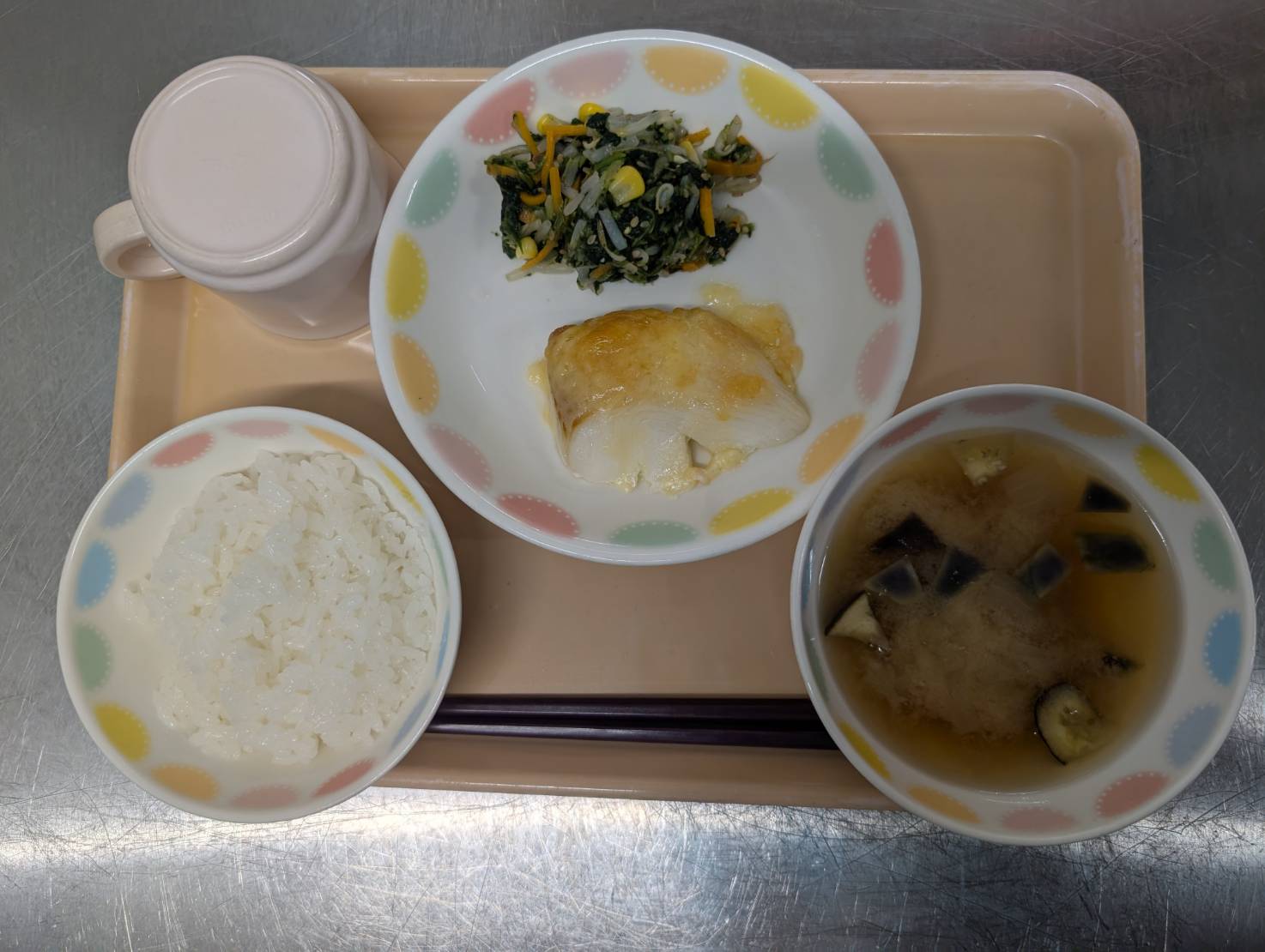 ごはん タラのチーズ焼き もやしのナムル なすの味噌汁 おやつ…きなこバナナ