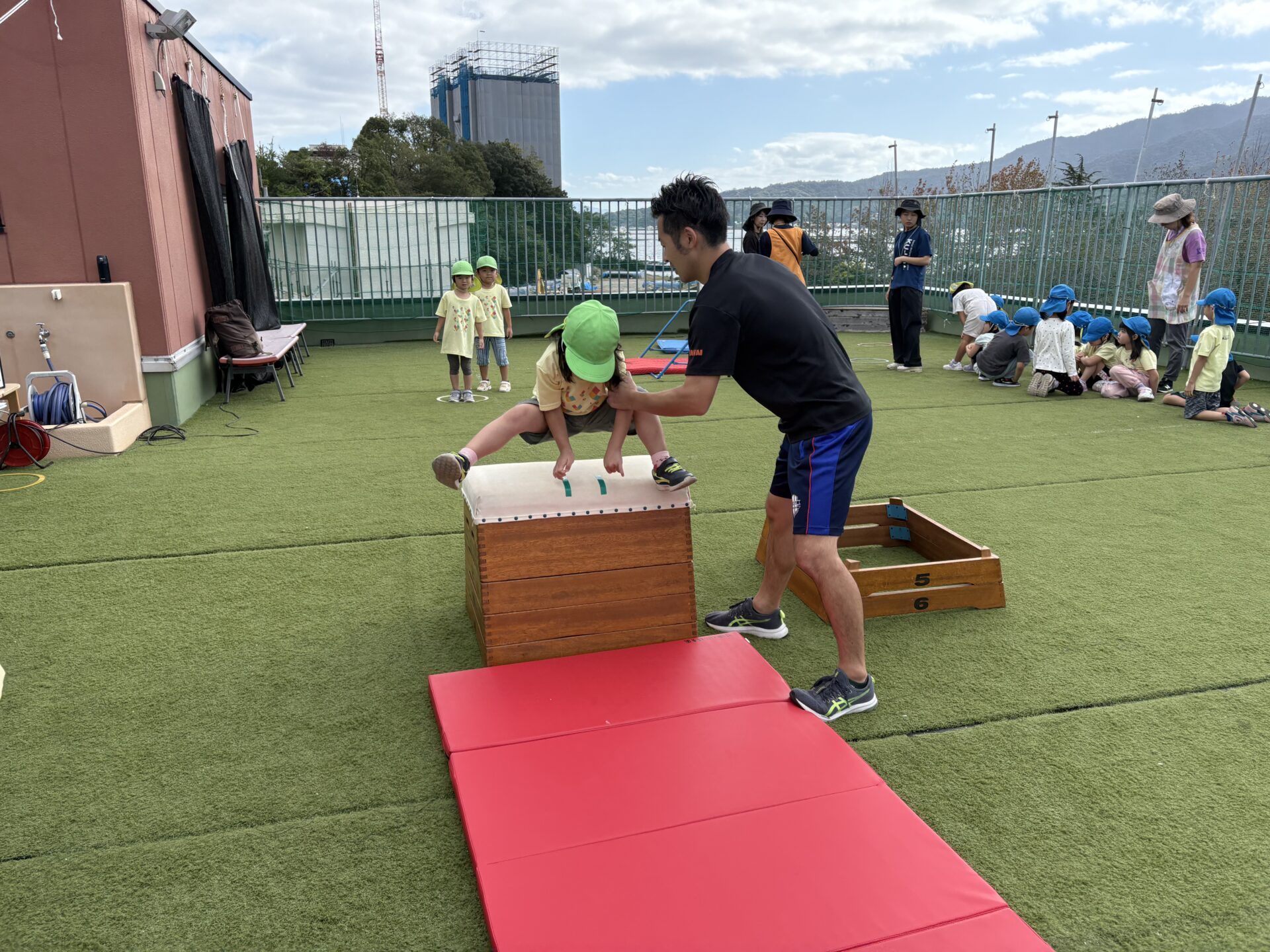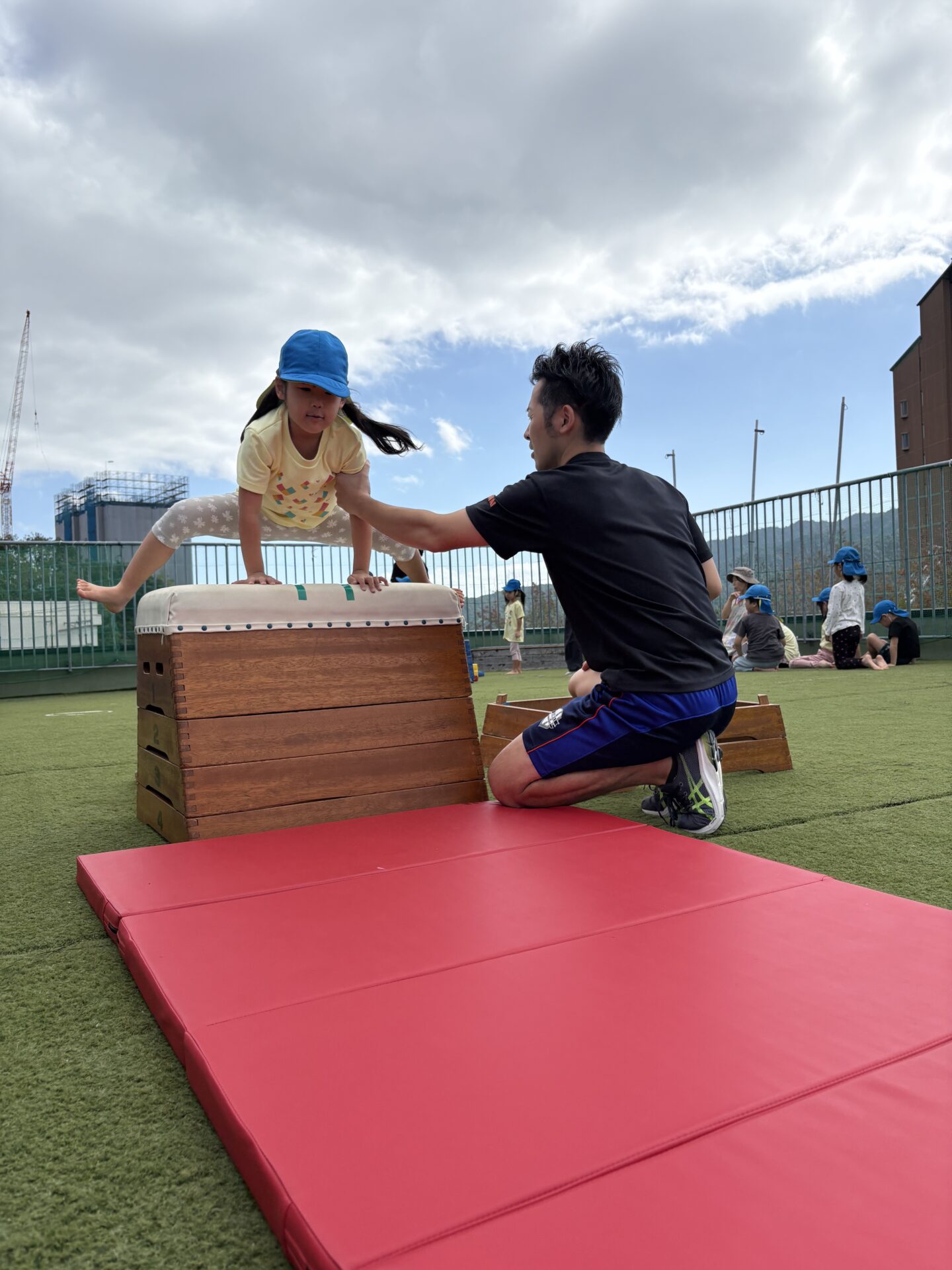運動会の鉄棒、跳び箱の練習です。