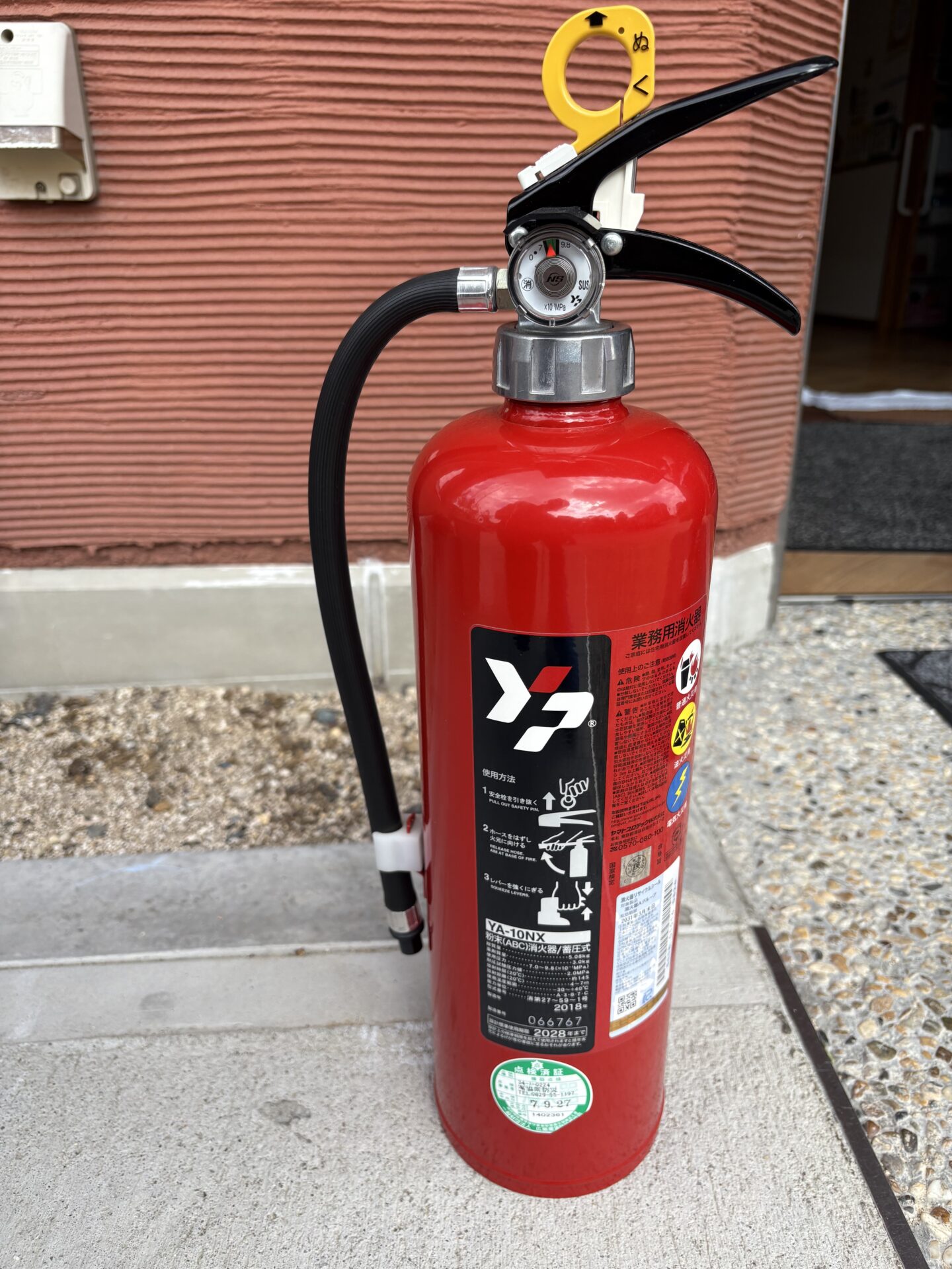 消火器に使い方が書いてあるんです!実際の火事の時は、慌てず、手順通りに使ったら大丈夫なのです!