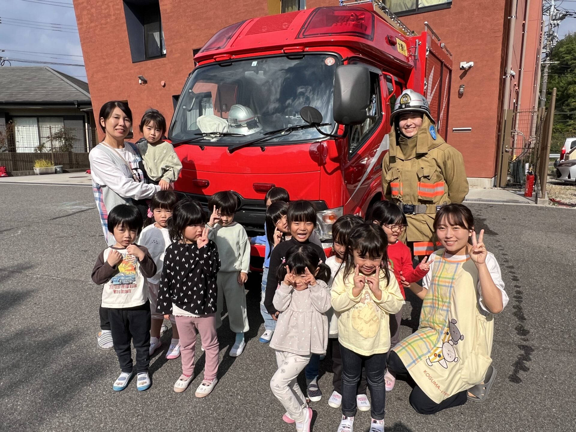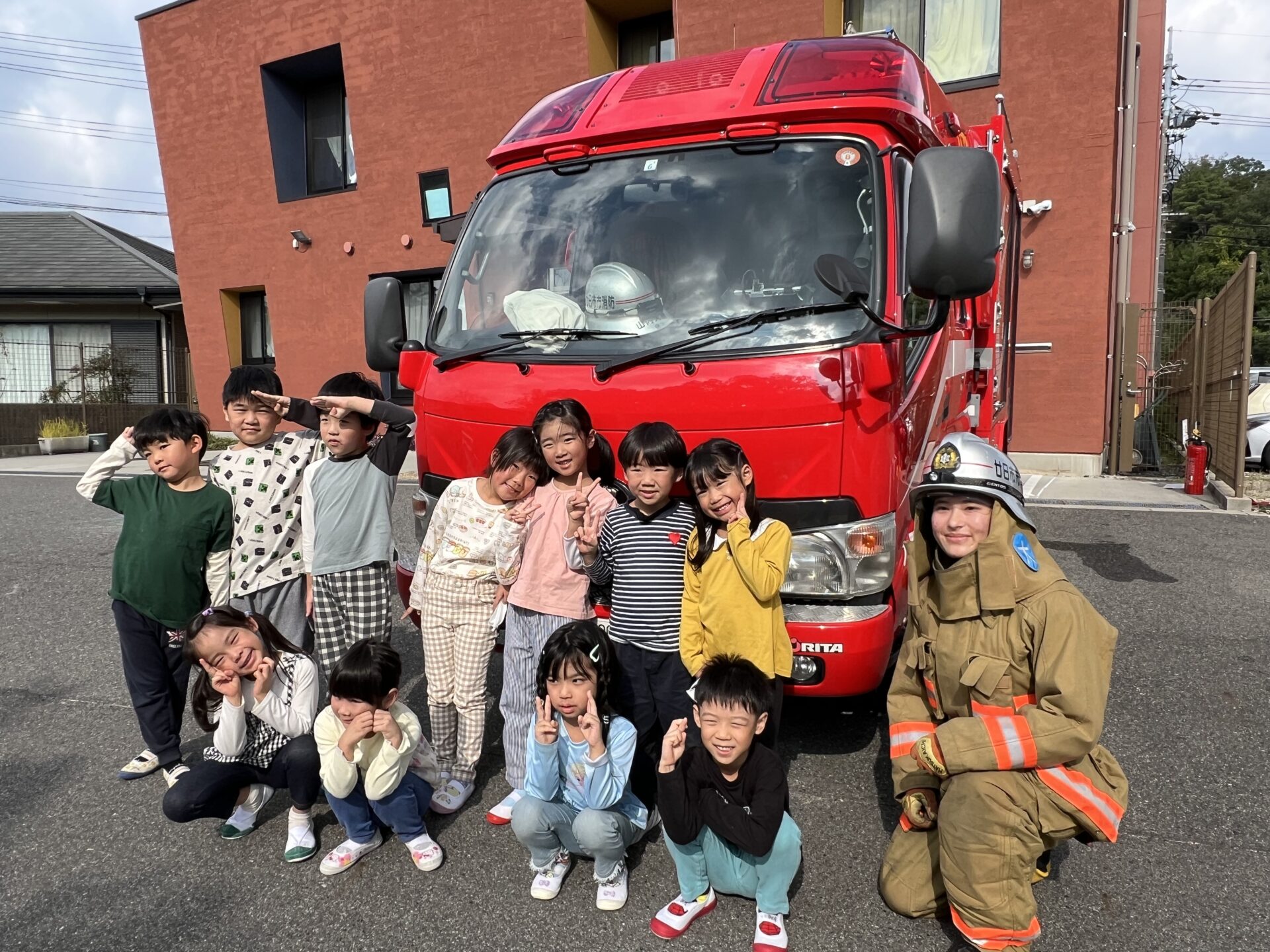 最後は、消防士さんと消防車と写真を撮って、子どもたちは大満足の笑顔でした☺️