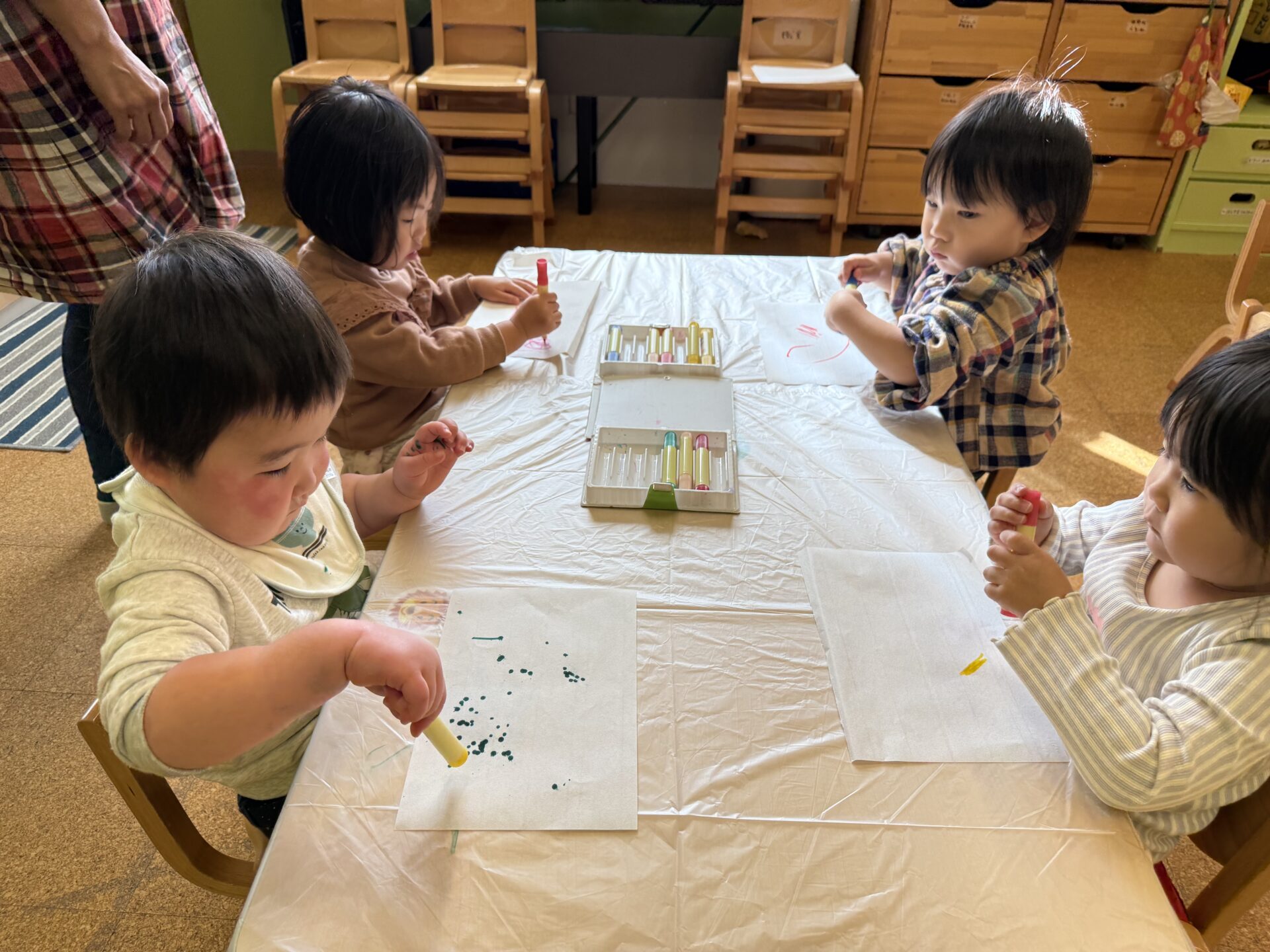 いろんな色で描く方が綺麗になるよ!と伝えるとちゃんと色を変えて描いていました👏