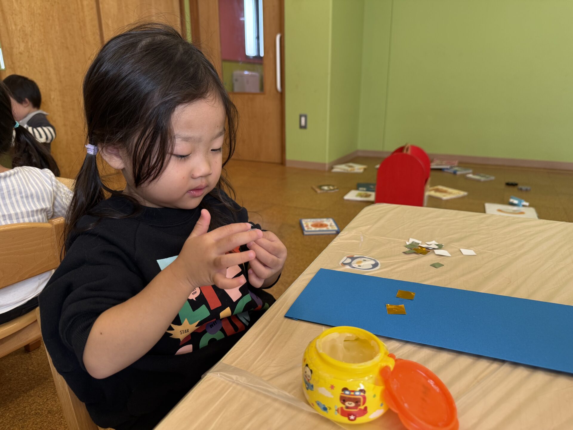 のりがいっぱい手についちゃったり、少なすぎてつかなかったりと苦戦しながら頑張りました✊
