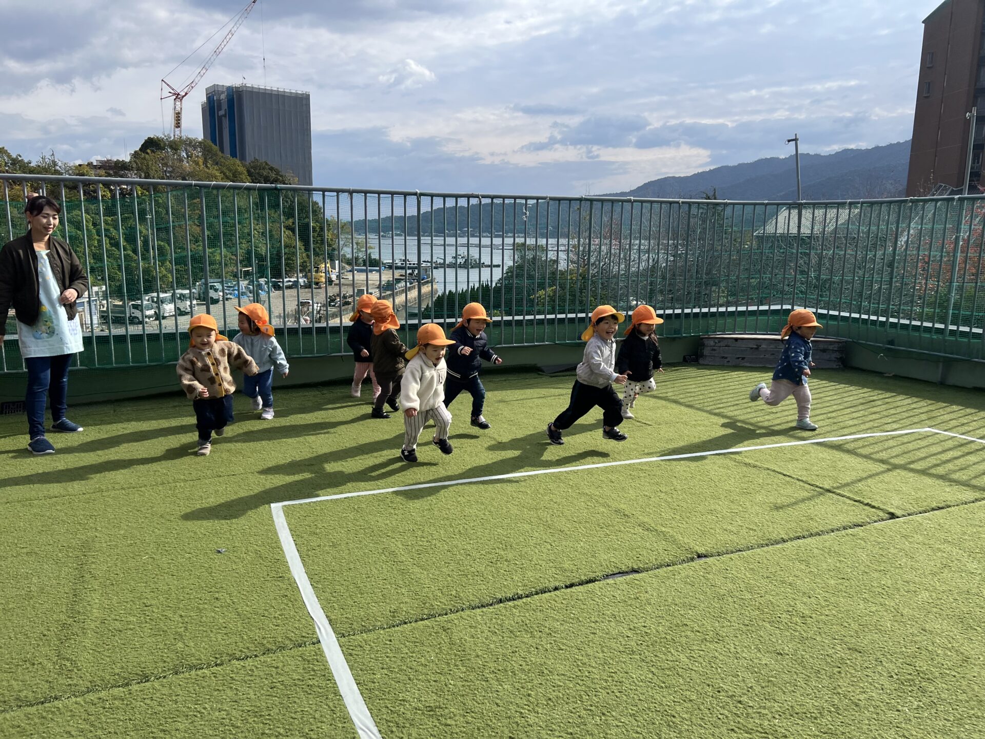 今日は少し冷たい風が吹いていましたが、あめチームは元気よく屋上で追いかけっこを楽しんでいましたよ。