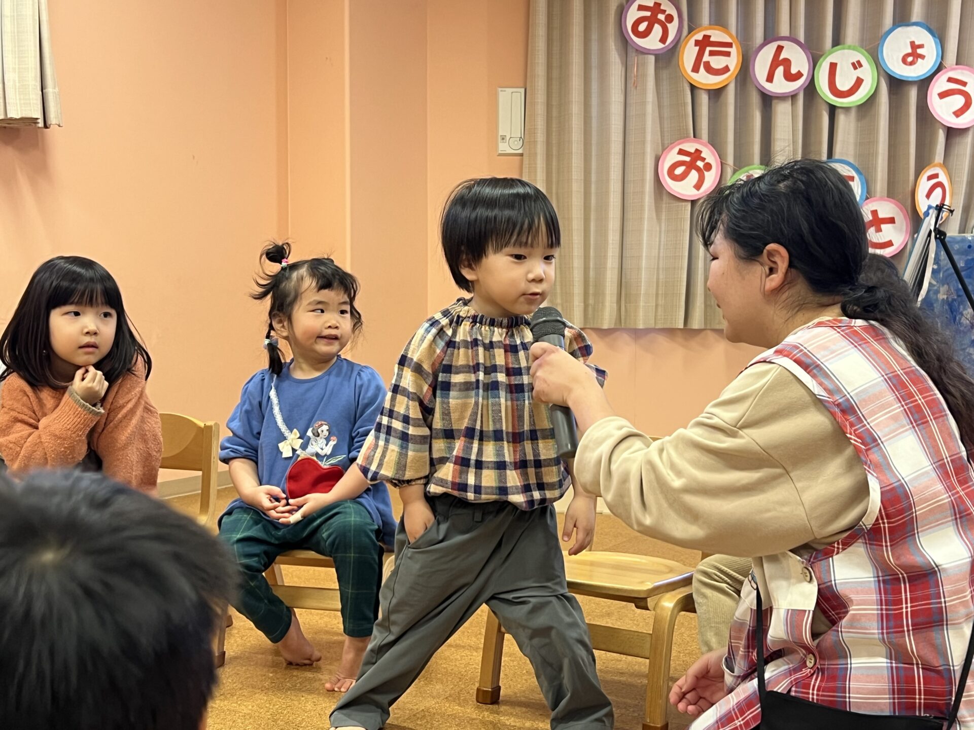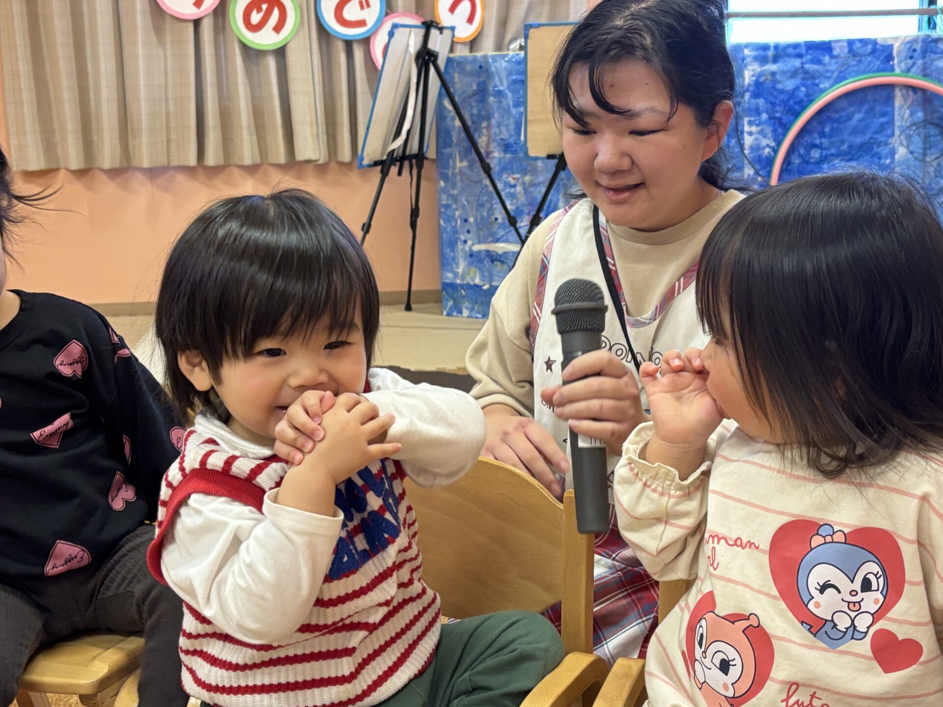 2歳児 あめチームからは、立ってインタビューに答えました💖