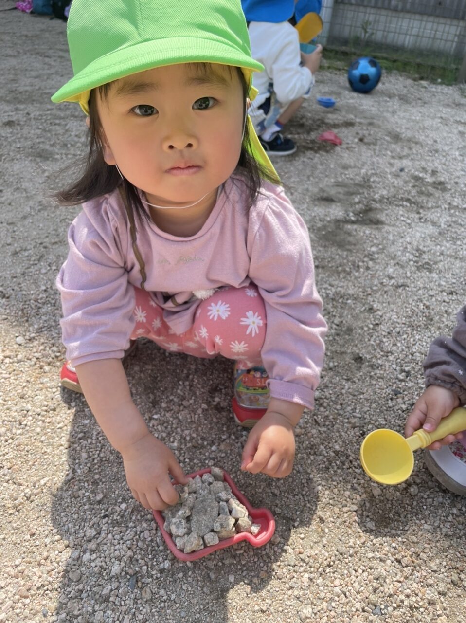 型はめに石を入れて集めています。