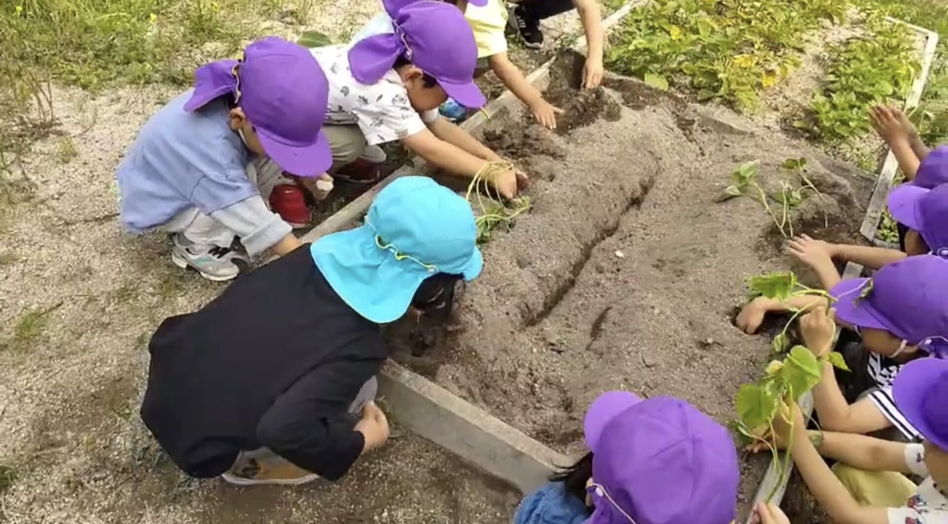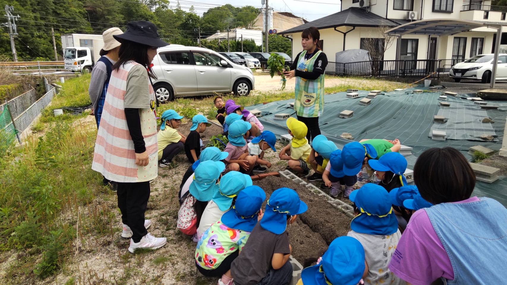 みんなでサツマイモの苗を植えました。