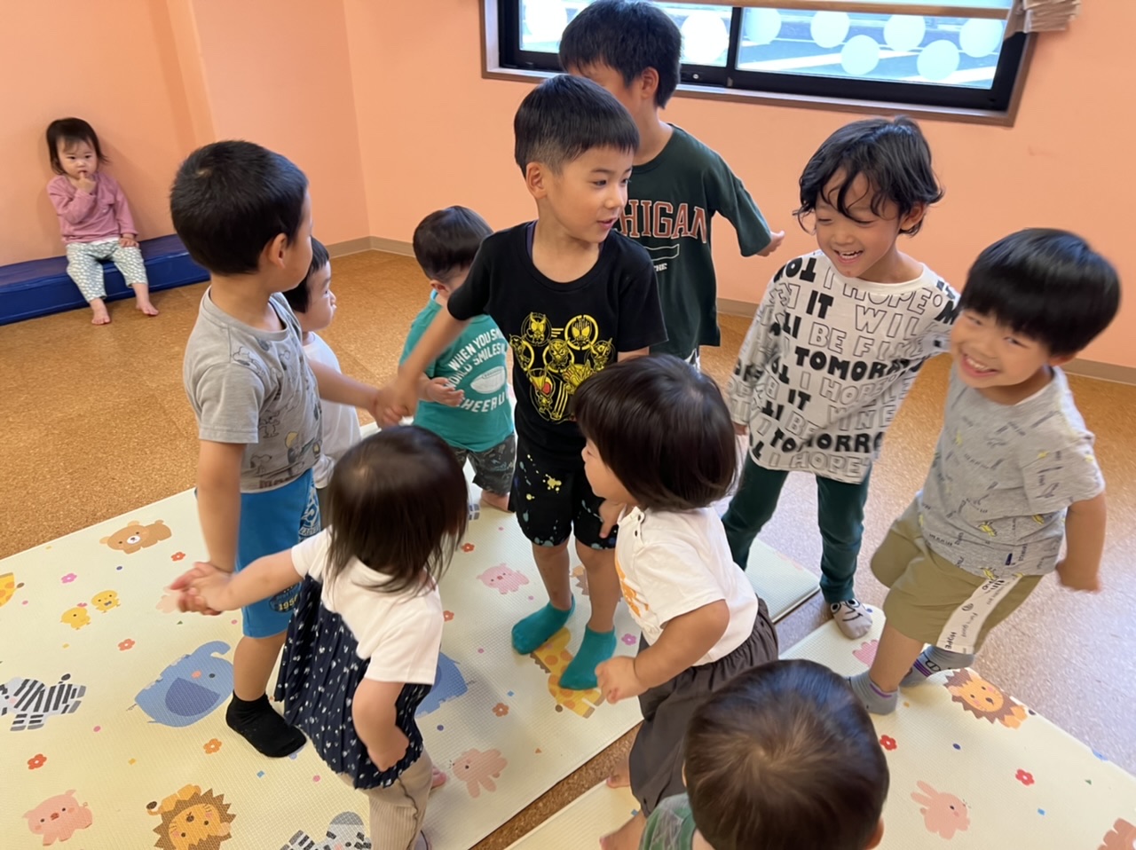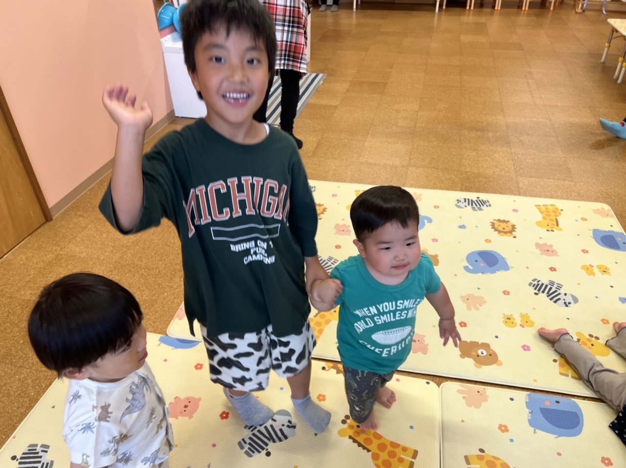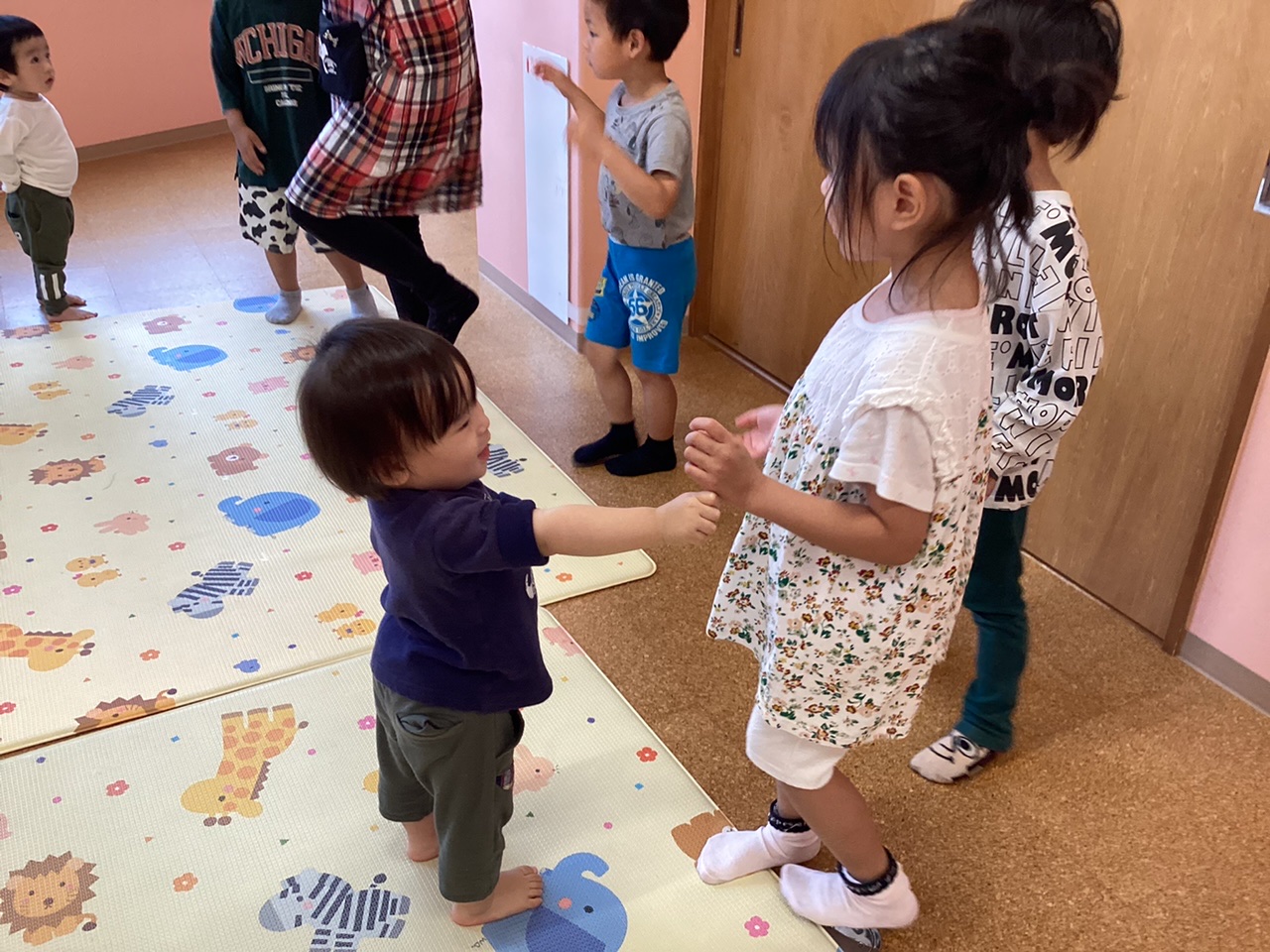 くじらチームさんが、だいちチームさんと関わる時、優しく手を繋いでくれたり、ハイタッチしたりする姿に先生たちみんなほっこり癒されました。