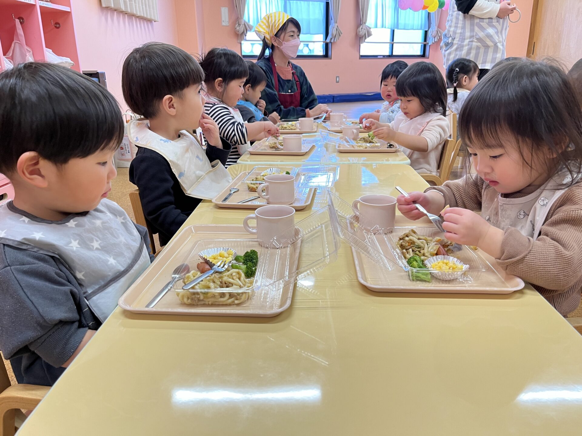 2024.02.14 給食 お知らせ 2/14 今日の給食 今日はお店屋さんごっこでした! 給食は引換券と焼うどんを交換してお店屋さんぽくしました。 メニューは やきうどん。バターコーン。ウインナー。ブロッコリー。 いつもと違う給食に嬉しそうでした🎵 一覧へ戻る