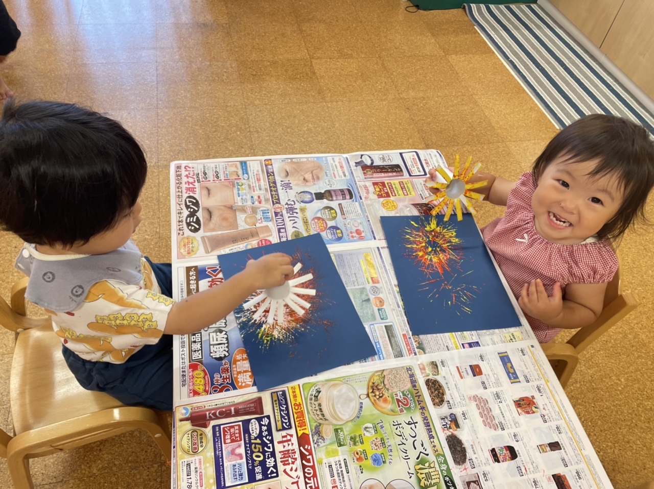 だいちチーム(1歳児)の8月の製作は「花火」です🎇