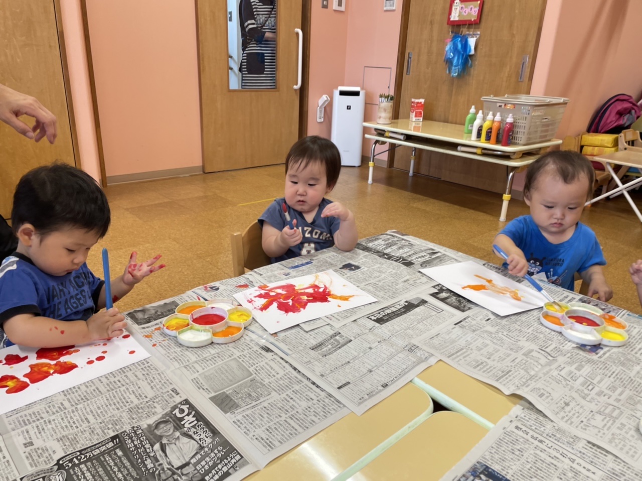 だいちチーム(1歳児)の9月の製作は子どもたちが画家になりました😎
